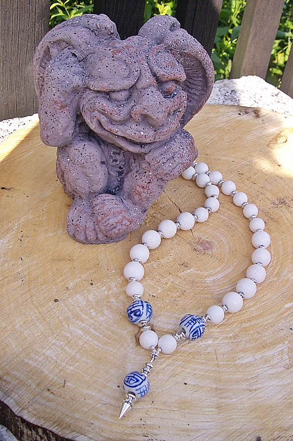 Die Kette ist wirklich toll. Hätte ich die Kugeln mit der Schrift einzeln gesehen, hätte ich mir keine gutaussehende Kombi vorstellen können. Tolle Idee!