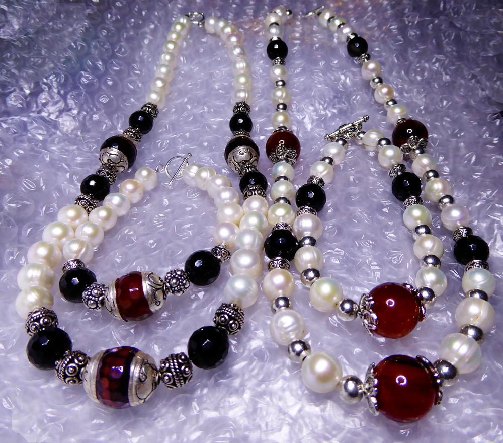 Karneol, Onyx, Silber und Süßwasserperlen
