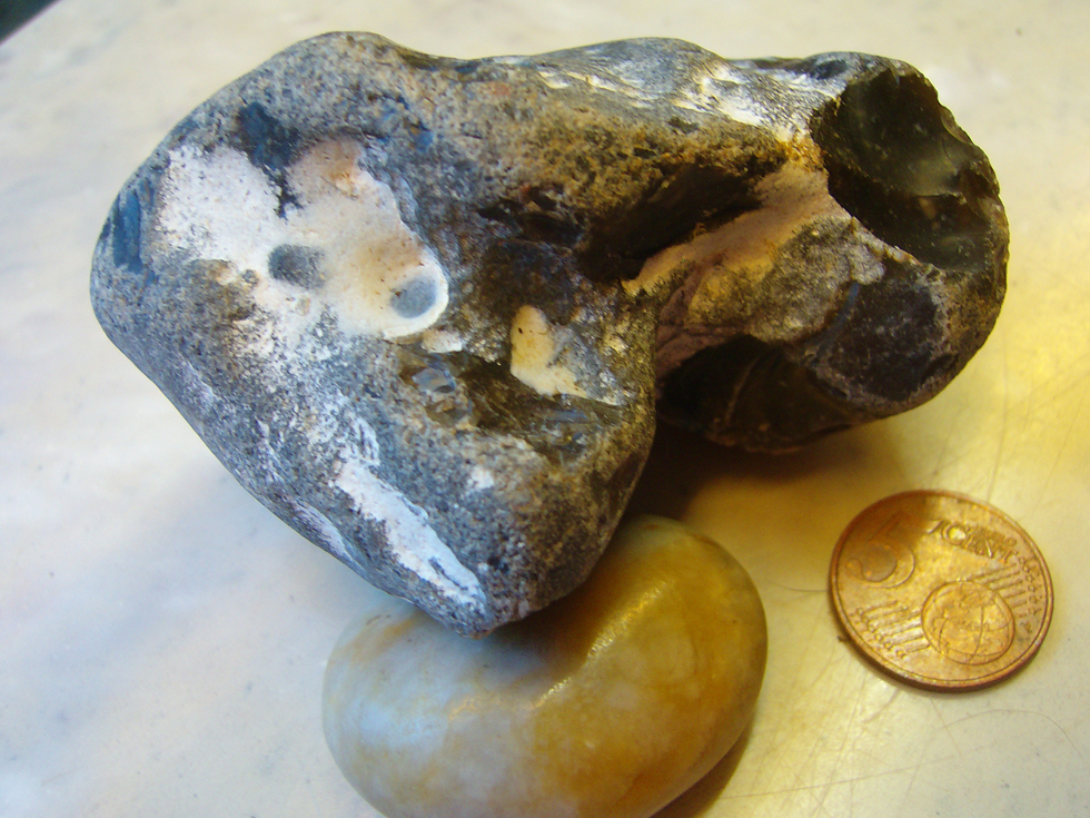 Heute morgen hab ich noch einen dicken schwarzen Flint gefunden - gleicher Parkplatz, diesmal unter einem Strauch