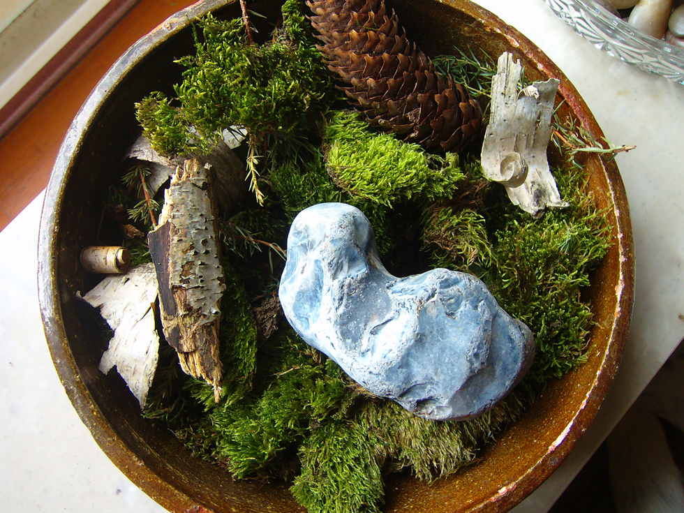Das ist meine diesjährige Herbst-Deko, und ich hatte ihn da eigentlich nur kurz ablegen wollen, und dann fiel mir auch auf, dass er da gut reinpasst