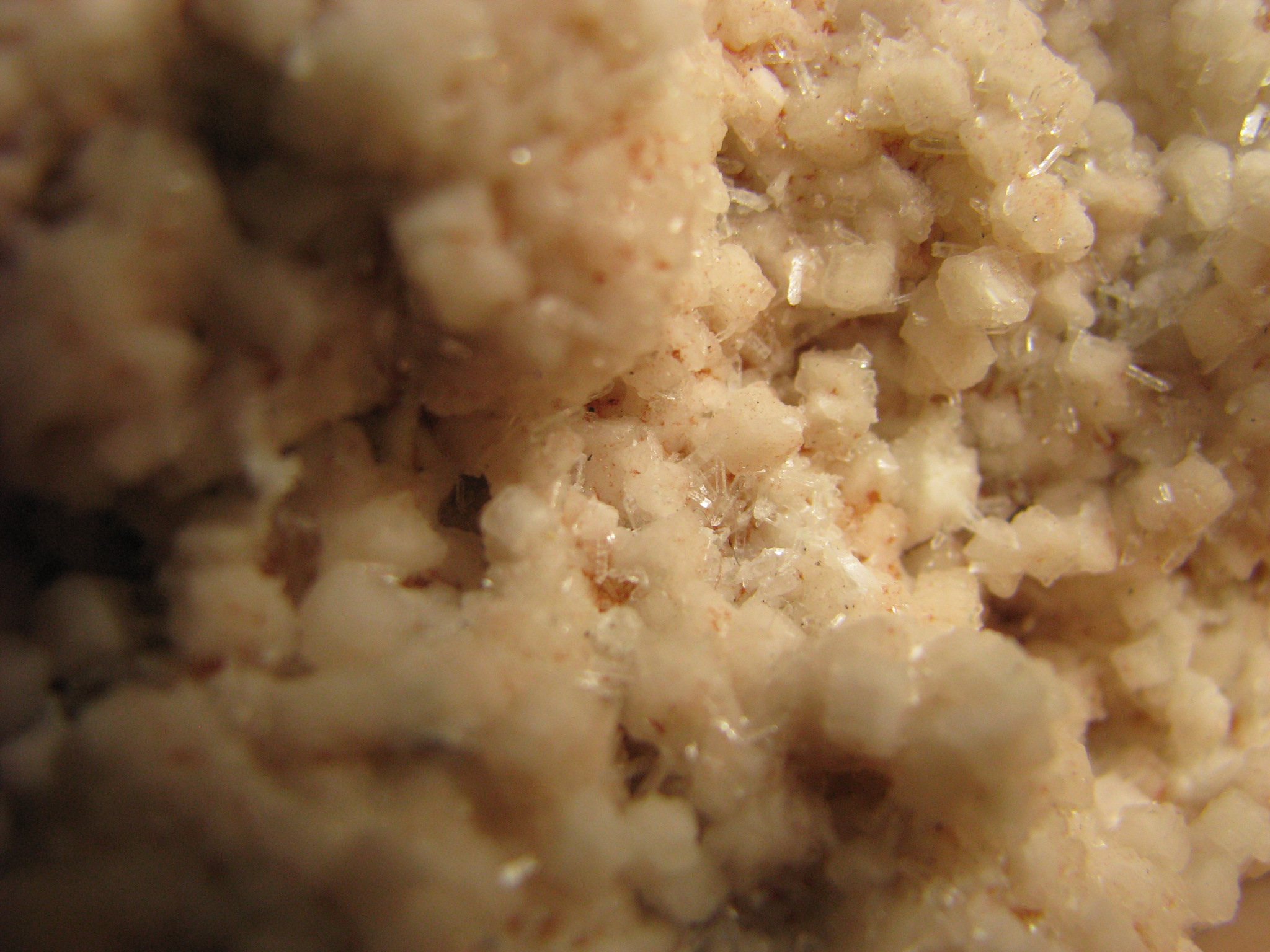 die Farbe der eher kubischen Kristalle ist leicht hellrosa --die Punkte sind dunkler