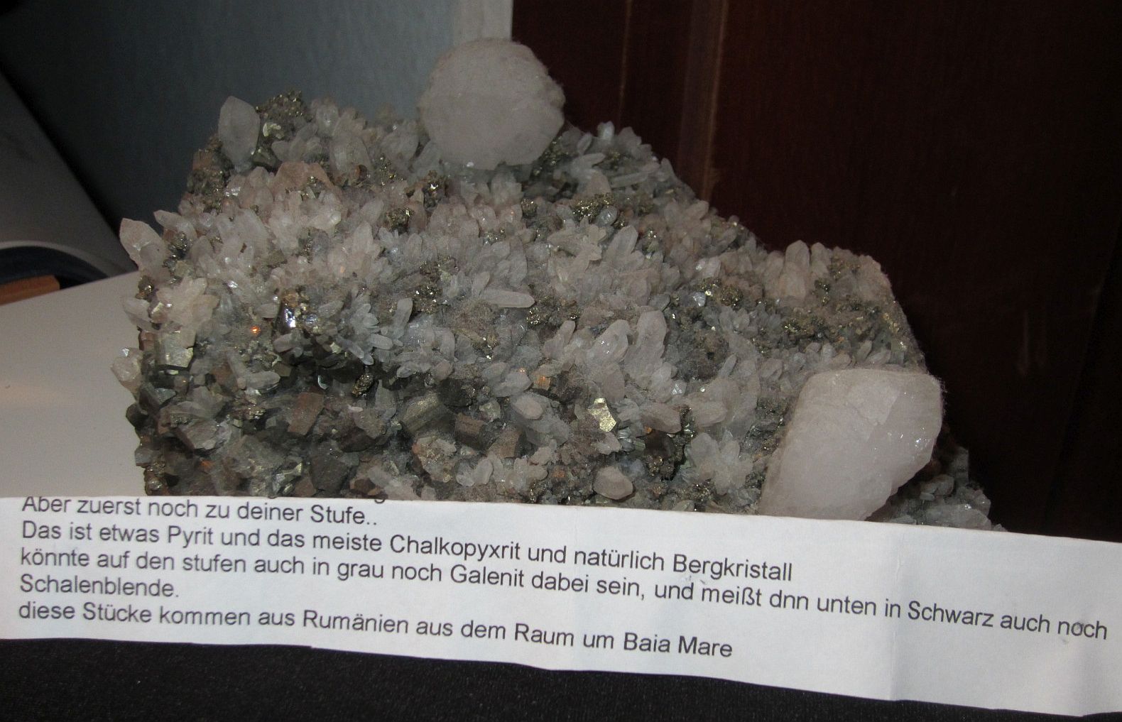 Pyrit oder Chalkopyrit ist es glaube ich nicht, die Farbe ist eher silbrig , aber die anderen google ich mal nach
