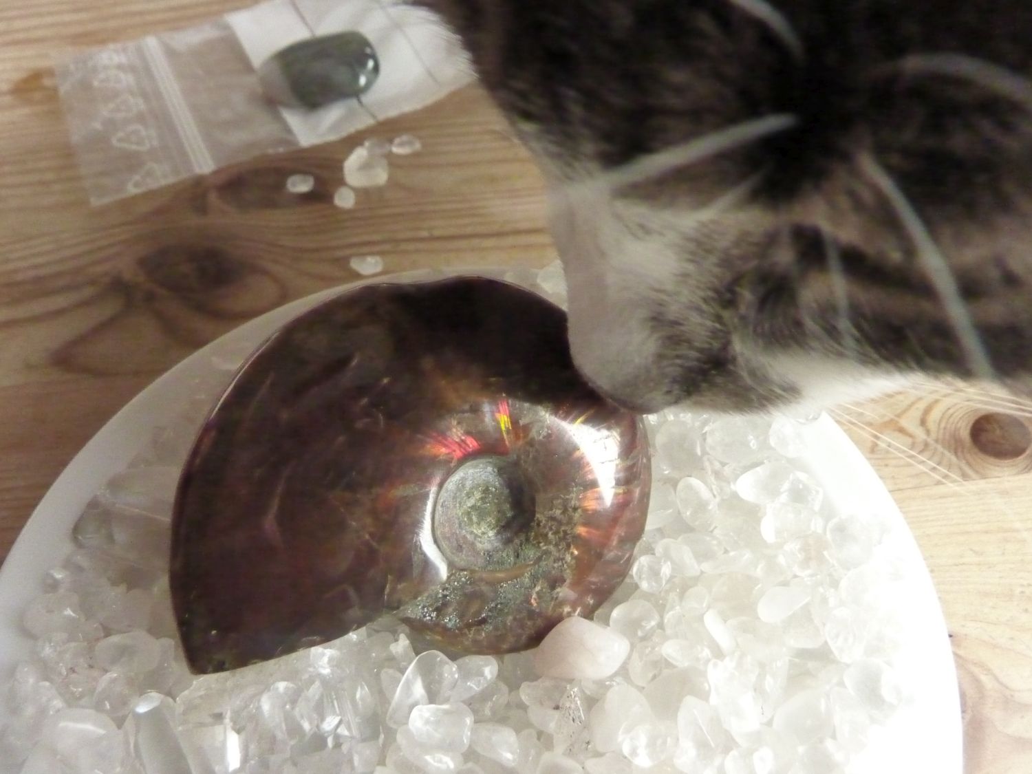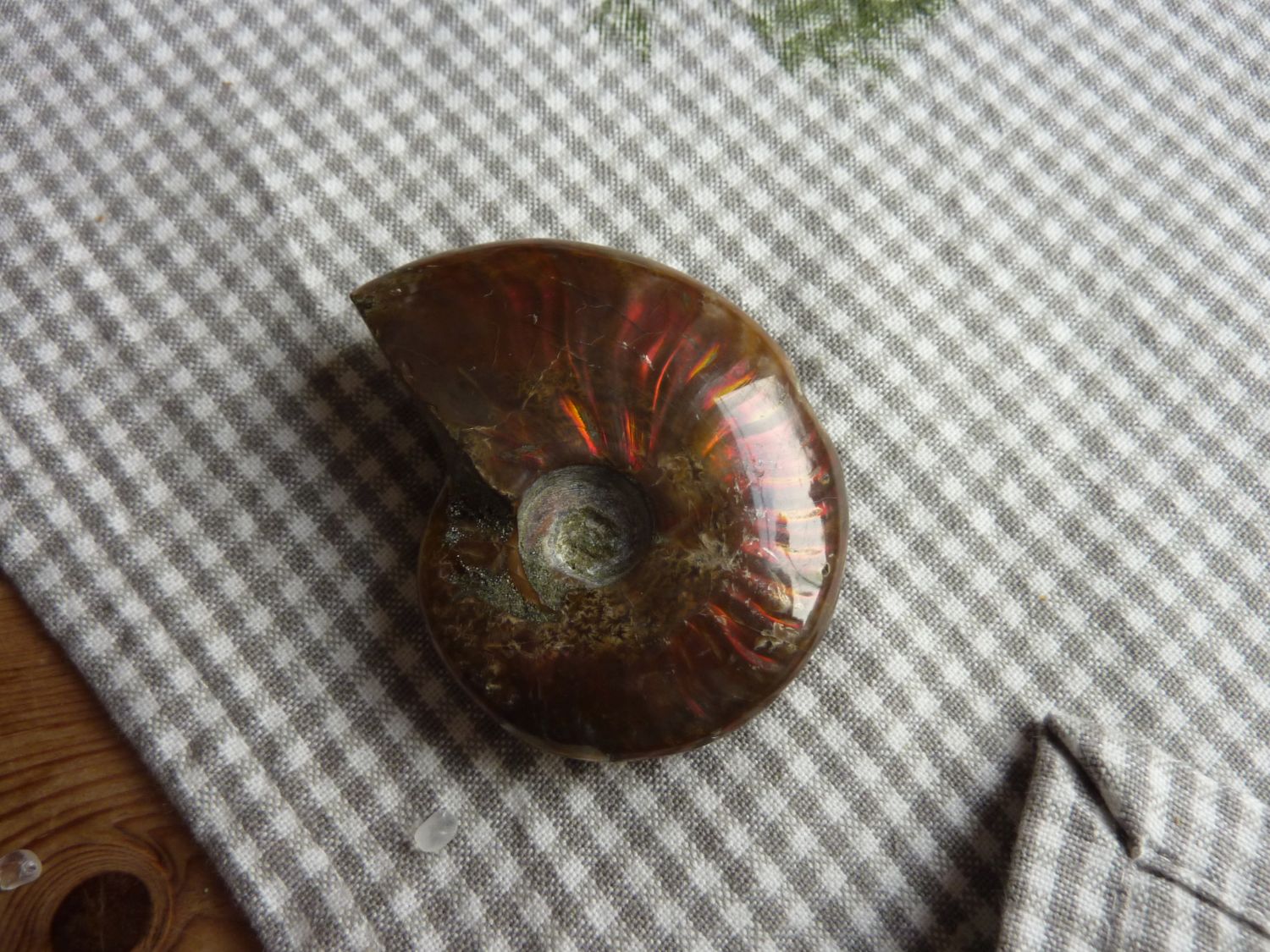 Die Freundin meiner Tochter hat einen toll rot schillernden Ammoniten ergattert. Leider hat mein Fotoaparat den richtigen Rotton nicht einfangen können