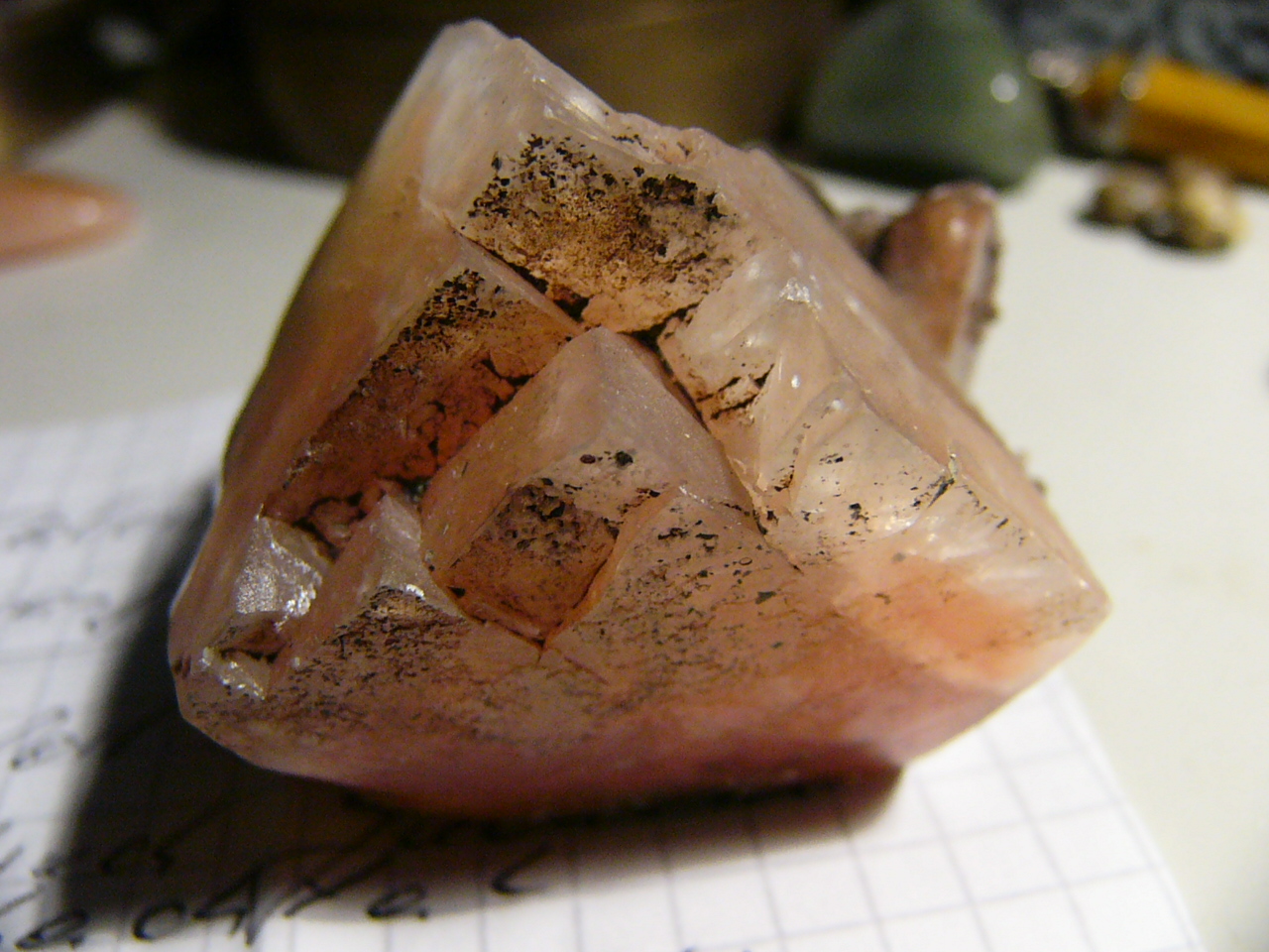 da hast du aber einen wunderschönen Calcit. Die Farbe finde ich ganz speziell (2. Foto). Zart lachs-apricot...