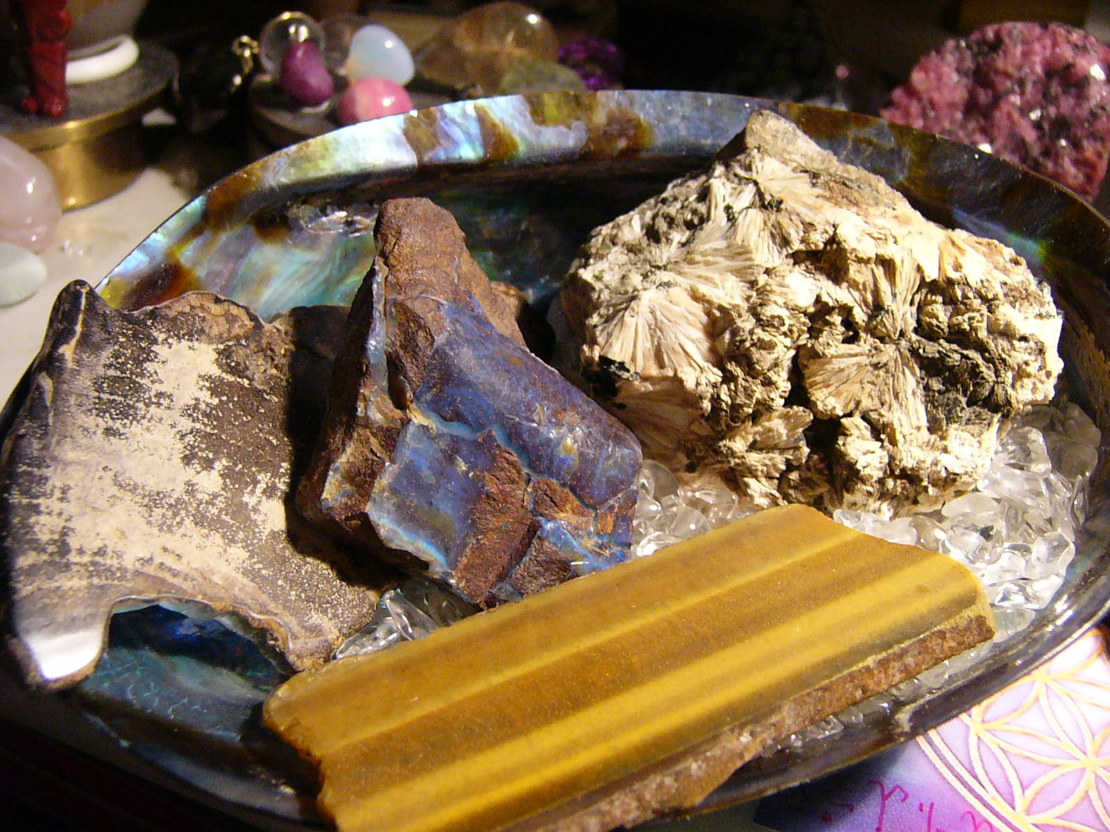 Tigeraugescheibe, Boulder Opal,versteinertes Holz und Baryt??