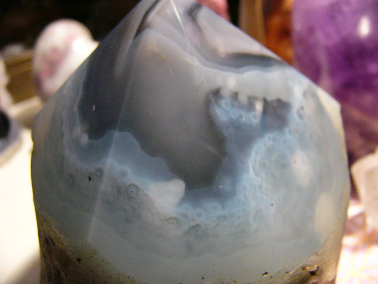 Ich denke das es sich um blau gebänderten Chalcedon handelt