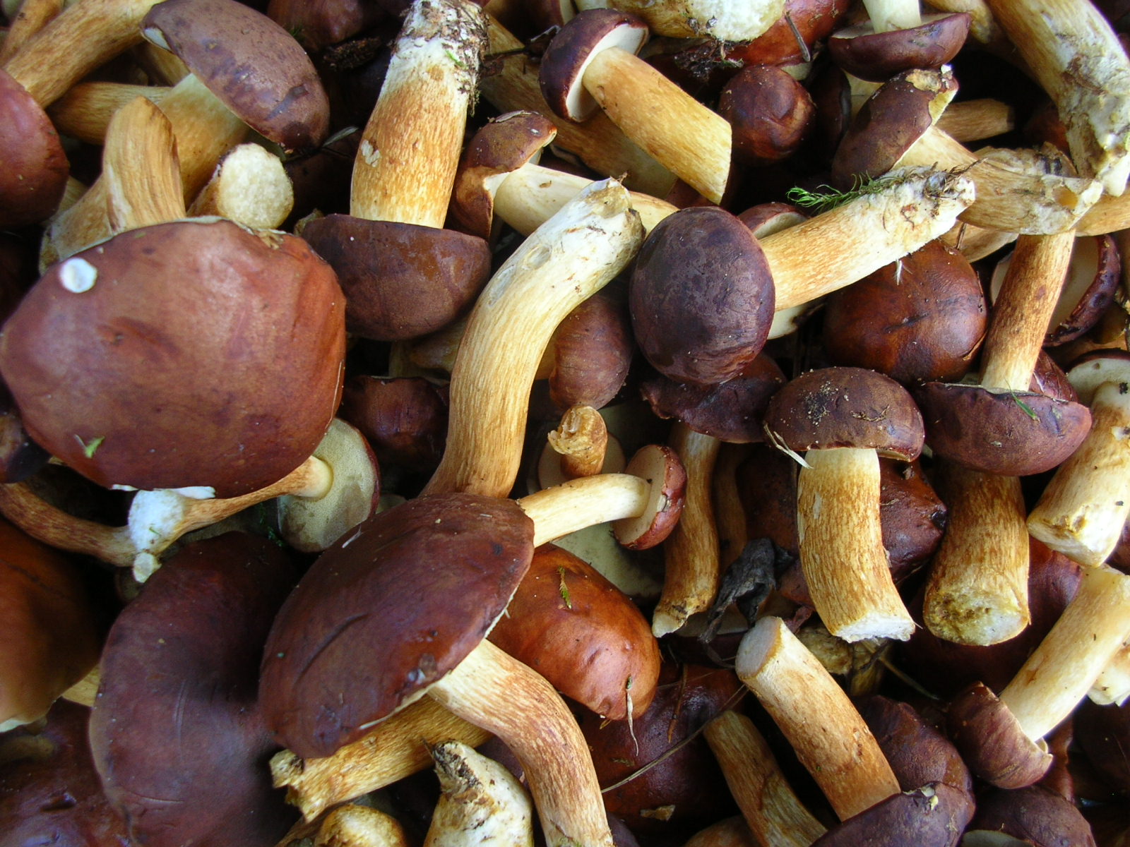 Am Morgen ging ich, mehr durch Intuition geleitet als durch Vernunft, im ersten Licht in die Kiefernwälder. Wie immer, so ein gewisses Gefühl... Was ich somit erahnt, aber nicht wirklich geglaubt hatte, war passiert: Es gab Pilze! Nicht nur das... Sie wuchsen dort, wo seit Jahren - nach massiven Eingriffen durch die Forstwirtschaft - schon lange kein einziger mehr gewachsen war. Für diesen Ort hatte ich vorerst keine neue Hoffnung geschöpft, genausowenig wie ich nach dreimonatiger Dürre überhaupt Hoffnung gehabt hatte, dass es Pilze geben könnte... Nun stand ich in Nebel und Regen unter den Kiefern, das Moos am Boden leuchtete im düsteren Licht des frühen Tages... diese seltsame Atmosphäre, wie in einer anderenen Welt... und die Pilze standen da wie sonst nur im Märchenbuch gemalt. Kein Mensch begegnete mir, nichts störte die Stunden des Sammelns. Ich drehte mich um die Pilze und die Pilze drehten sich um mich, von einer lichten stelle zur nächsten. Mit jedem Schritt in dieser Welt und in der Anderswelt, die alles durchwirkt.
