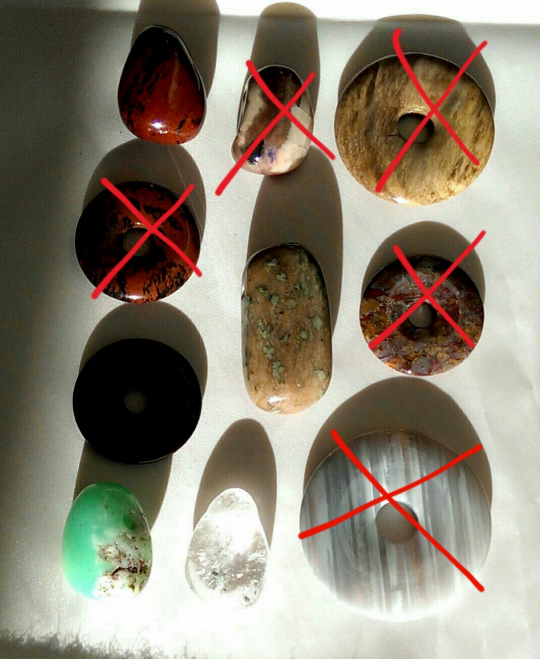 Chrysokoll-Malachit Donut, Wolkenjaspis Donut, Tigereisen Anhänger (sehr groß), Eisenjaspis Anhänger, "Rotes Tigerauge" (gebrannt) Anhänger