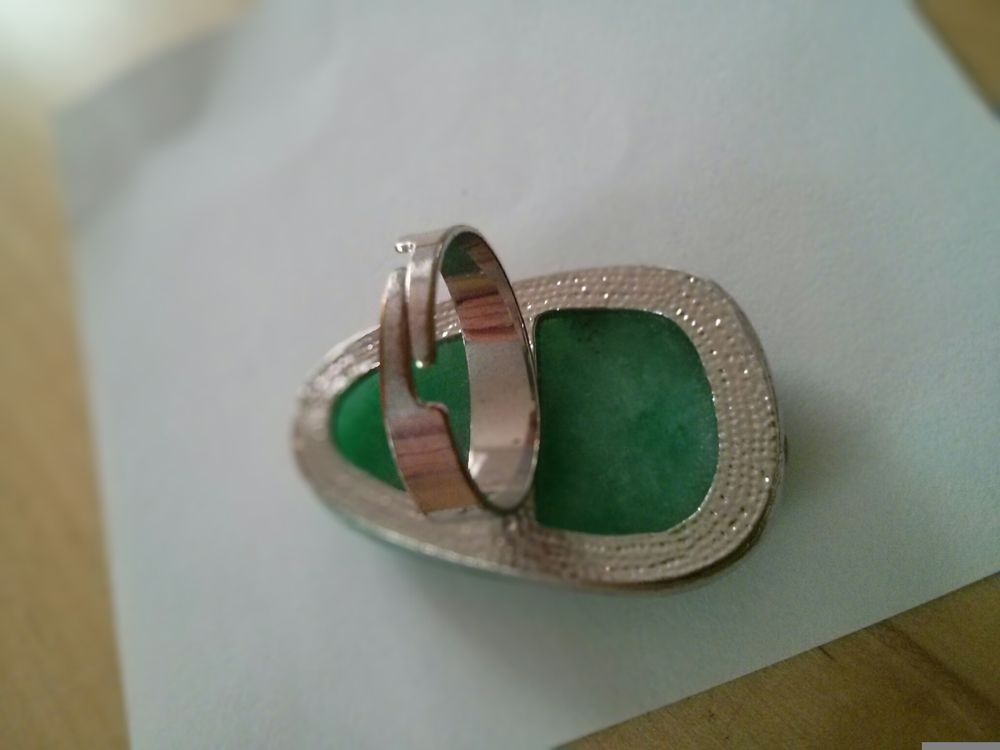 Der Ring ist kein echtes Silber, er ist größenverstellbar und der Stein vermutlich ein Aventurin.