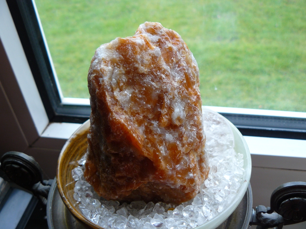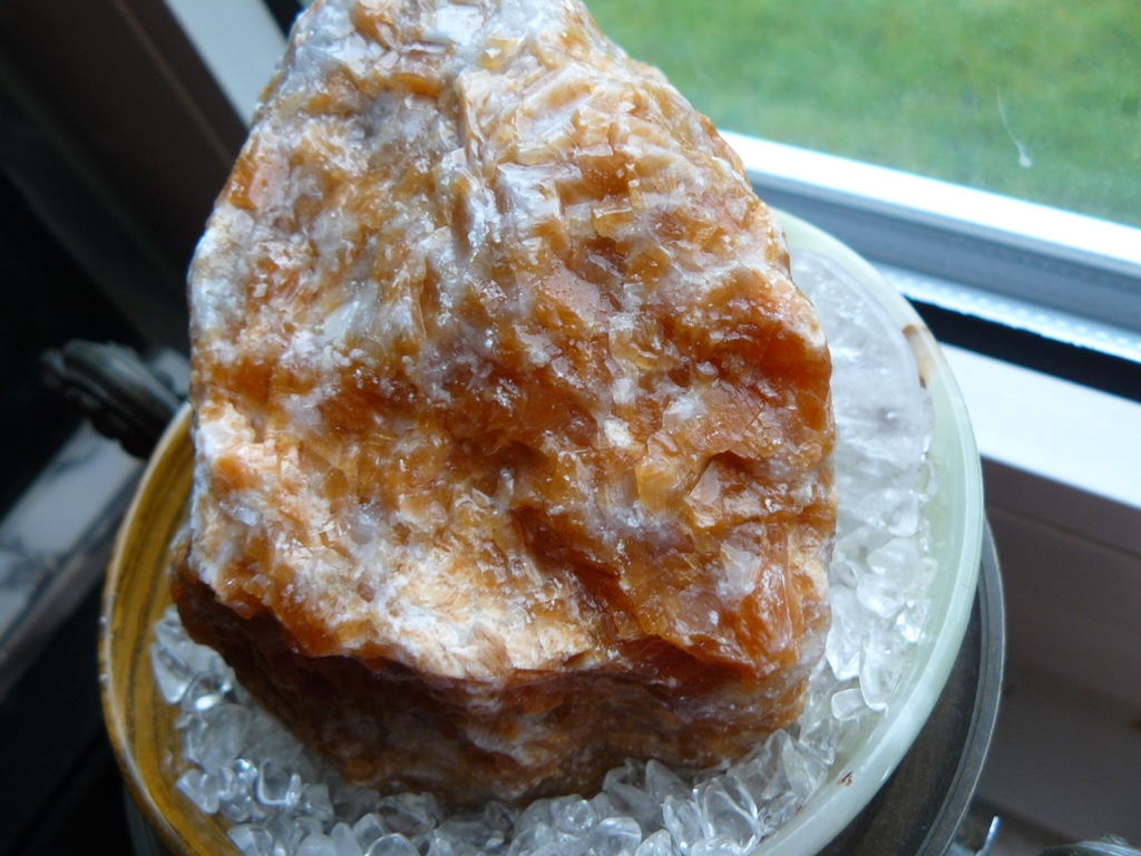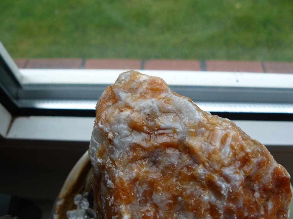 Hier mal ein größeres OrangenCalcit zum Vergleich, das fühlt sich gewachst an: