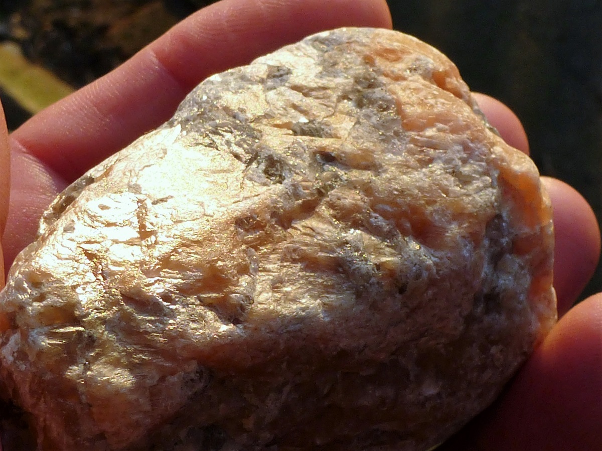 Ok, ja, ich weiß was du meinst. ich könnte mir denken, dass es daran liegt dass es ein Rohstein ist. Ich hab hier ne geschliffenen Scheibe aus Indien. manche orangenen Flecken glitzern, manche nicht, hängt sicher auch mit der Lichtbrechung zusammen. Sieht aber im Prinzip auch so aus. Nur dass es eben einige größere Hämatitteilchen auch hat.