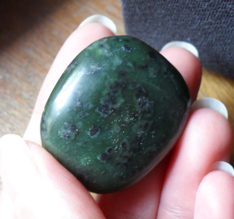 Ich finde den Stein recht schwer für seine Größe, er fühlt sich glatt, aber nicht wirklich fettig an.