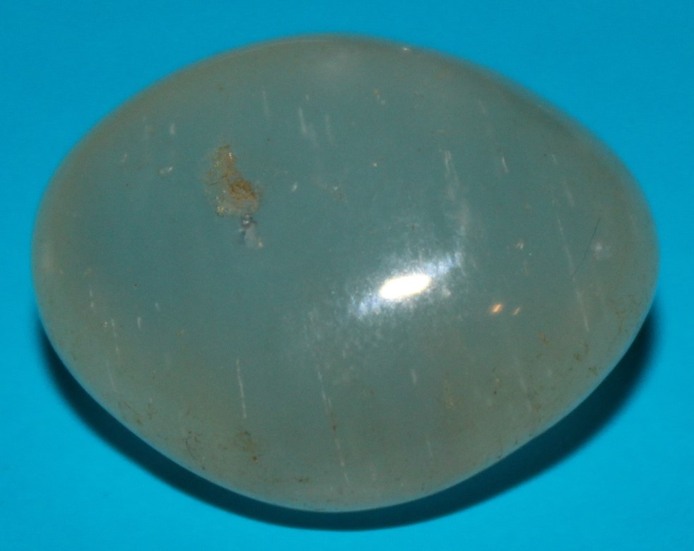 Leider kann man die Struktur des Steines nicht erkennen, aber es wäre möglich, das es sich um einen sehr hellen Aventurin handelt, doch würde ich meine Hand nicht dafür ind Feuer legen