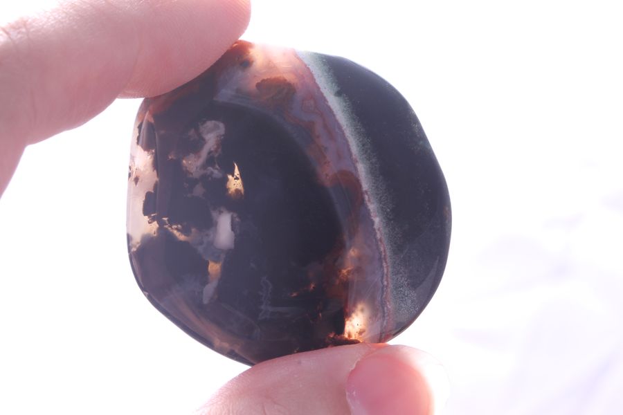 Für mich sieht das wie ein Mischling aus. Beim 2. Foto dachte ich an Moosachat, aber bei den anderen Fotos, besonders vom grün her, senke ich da eher an Rhyolith