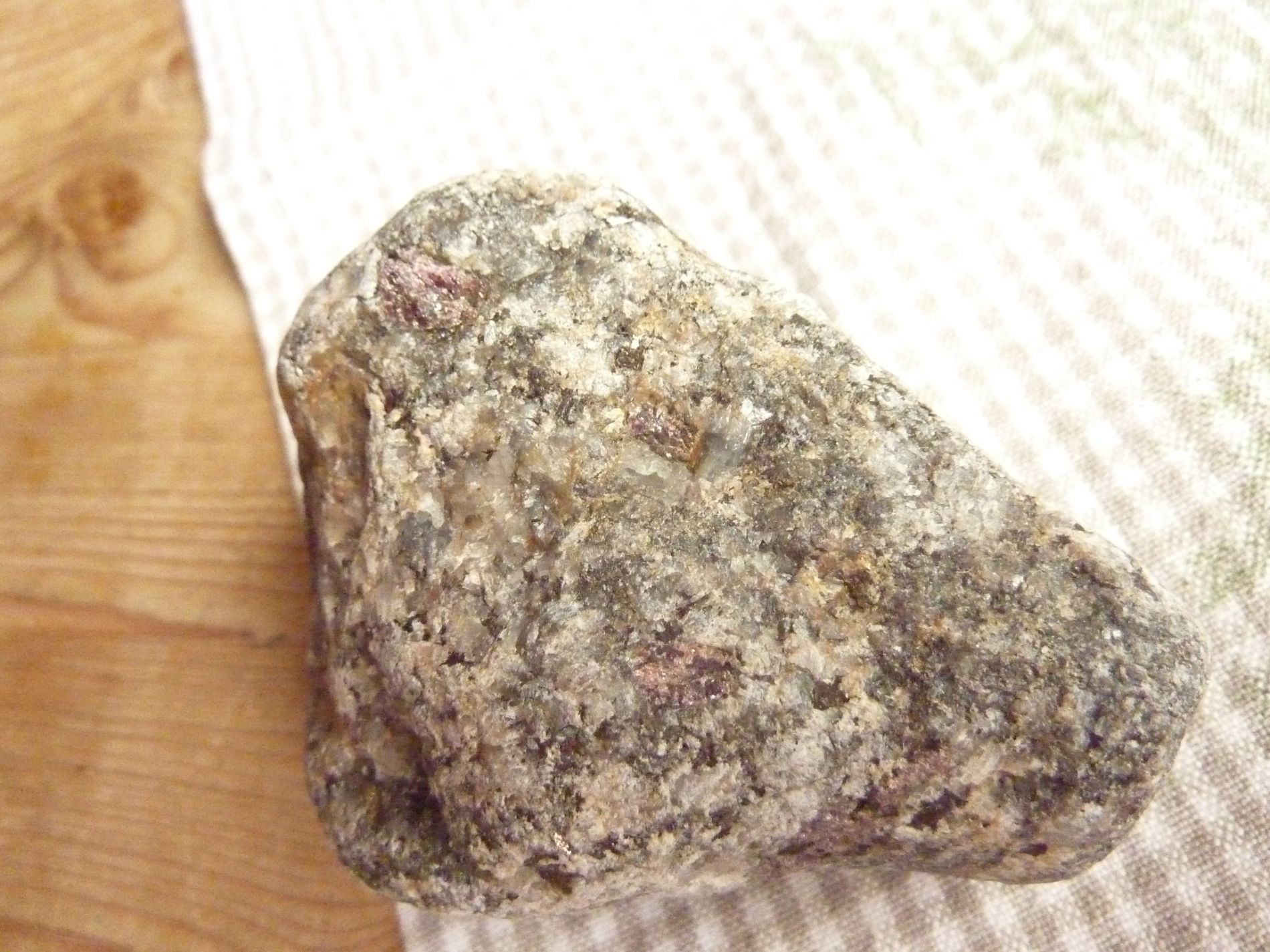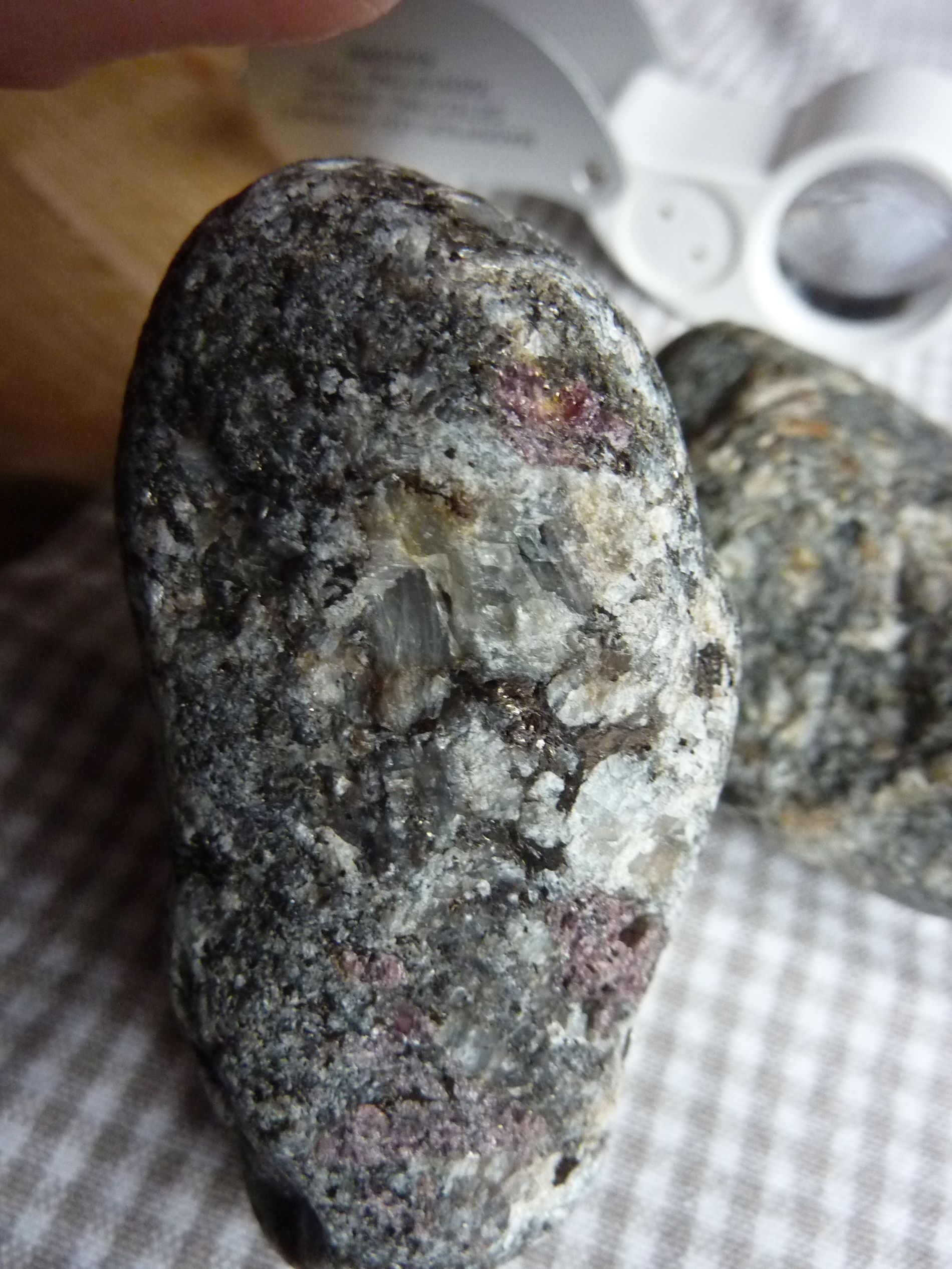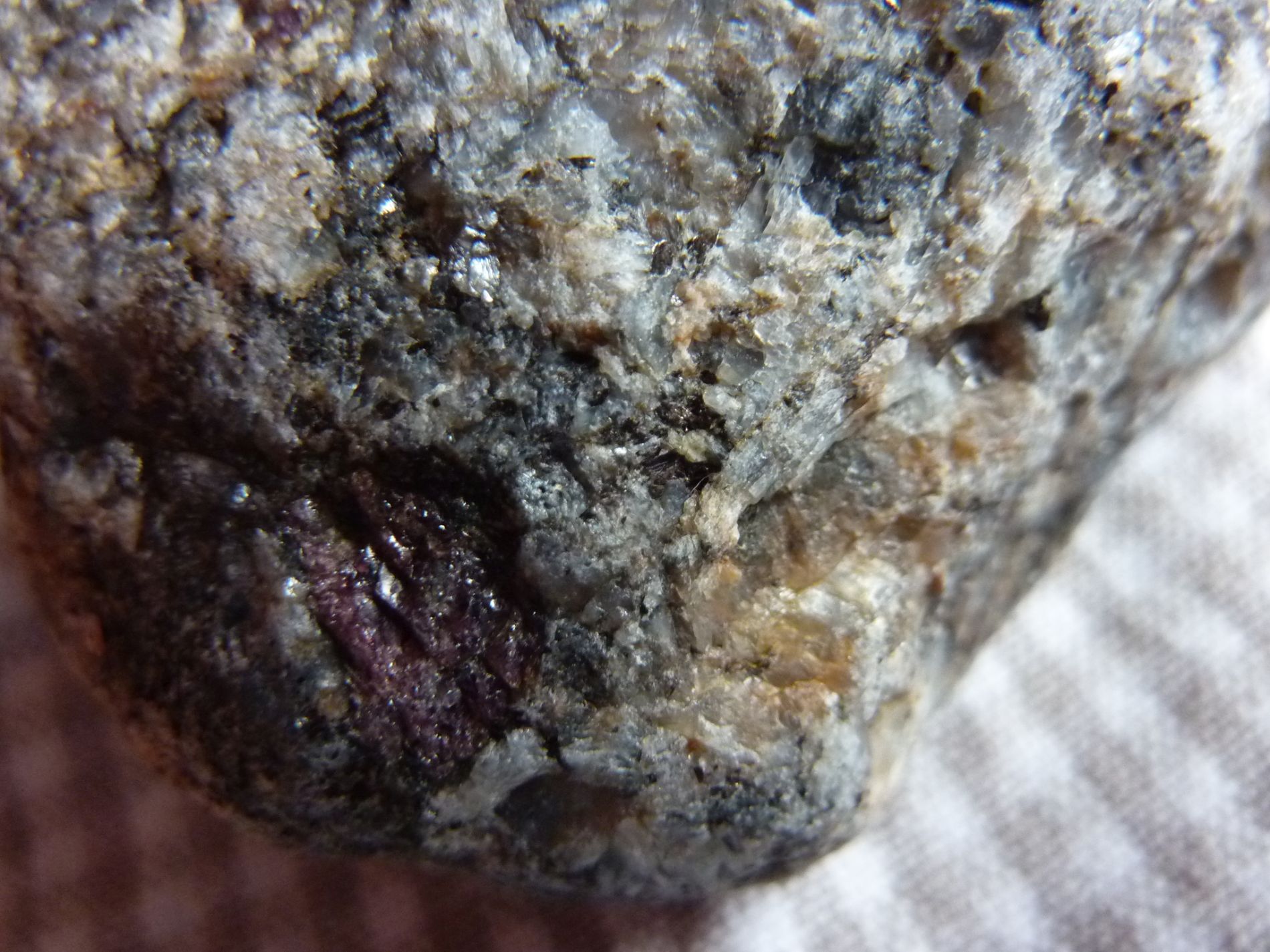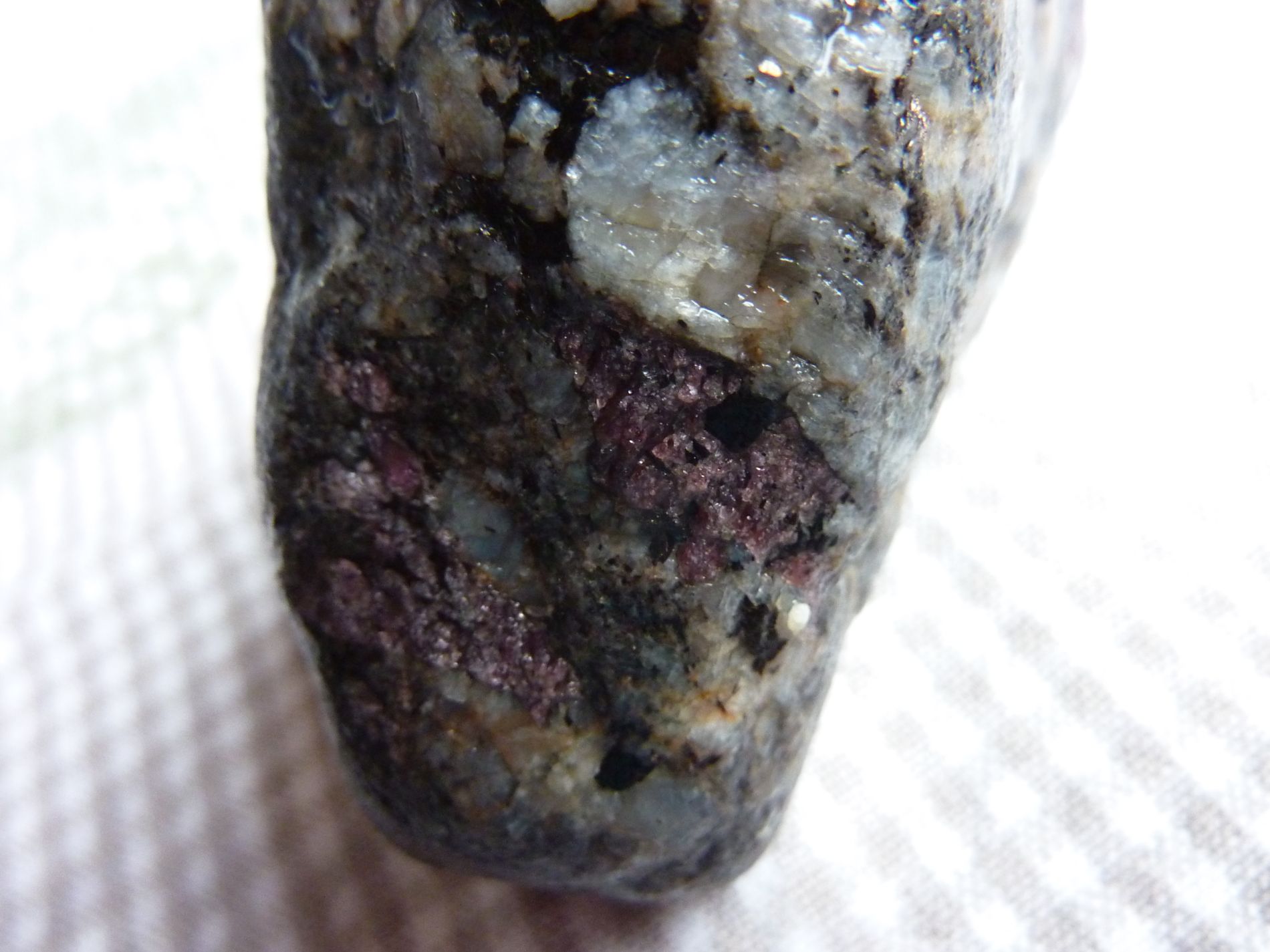 Dieser Stein läßt mich irgendwie nicht los. Für mich hat er etwas Larvikit-mäßiges mit seinen großen Feldspäten. Doch die Granate irritieren mich schon....