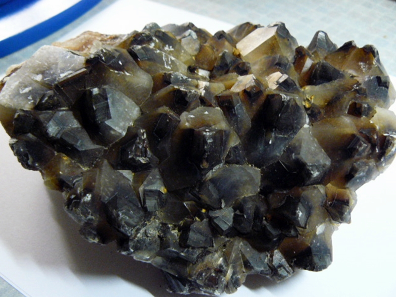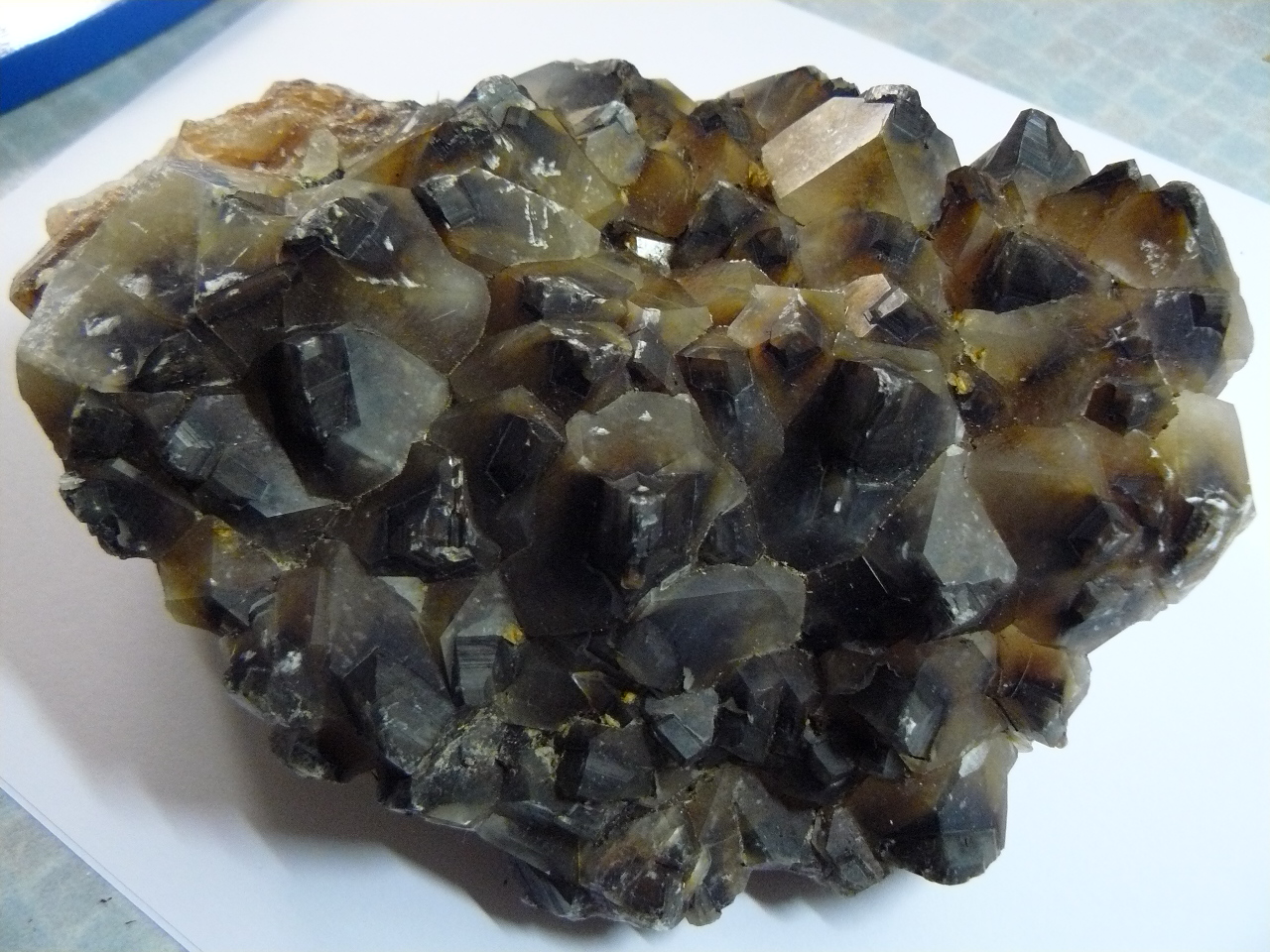 Bei genauer Betrachtung sind diese dunklen Spitzen nicht immer auch die Spitzen des darunterliegenden farblosen/weißen Gesteins (Bild P1080393.JPG). Diese dunklen Spitzen sitzen auch auf Kristallflächen des darunterliegenden etwas. Der Übergang von farblos zu dunkelbraun scheint auch nicht nahtlos zu sein (Bild P1080398.JPG), ein Indiz, dass es sich dabei um mindestens zwei Entstehungsperioden gehandelt hat. Aus der Ferne betrachtet und unter Zugrundelegung von Feueropales Untersuchungen (Härte und Säurereaktion) ist ein Quarz (Bergkristall) mit einem aufgewachsenen zweiten Mineral (z.B. Anatas) nicht ausgeschlossen.pezzottait hat geschrieben:...Die Spitzen mit ihren Wachstumsstreifen, Form und Farbe haben eine große Ähnlichkeit zu Anataskristallen. Vielleicht sind´s doch zwei Minerale....