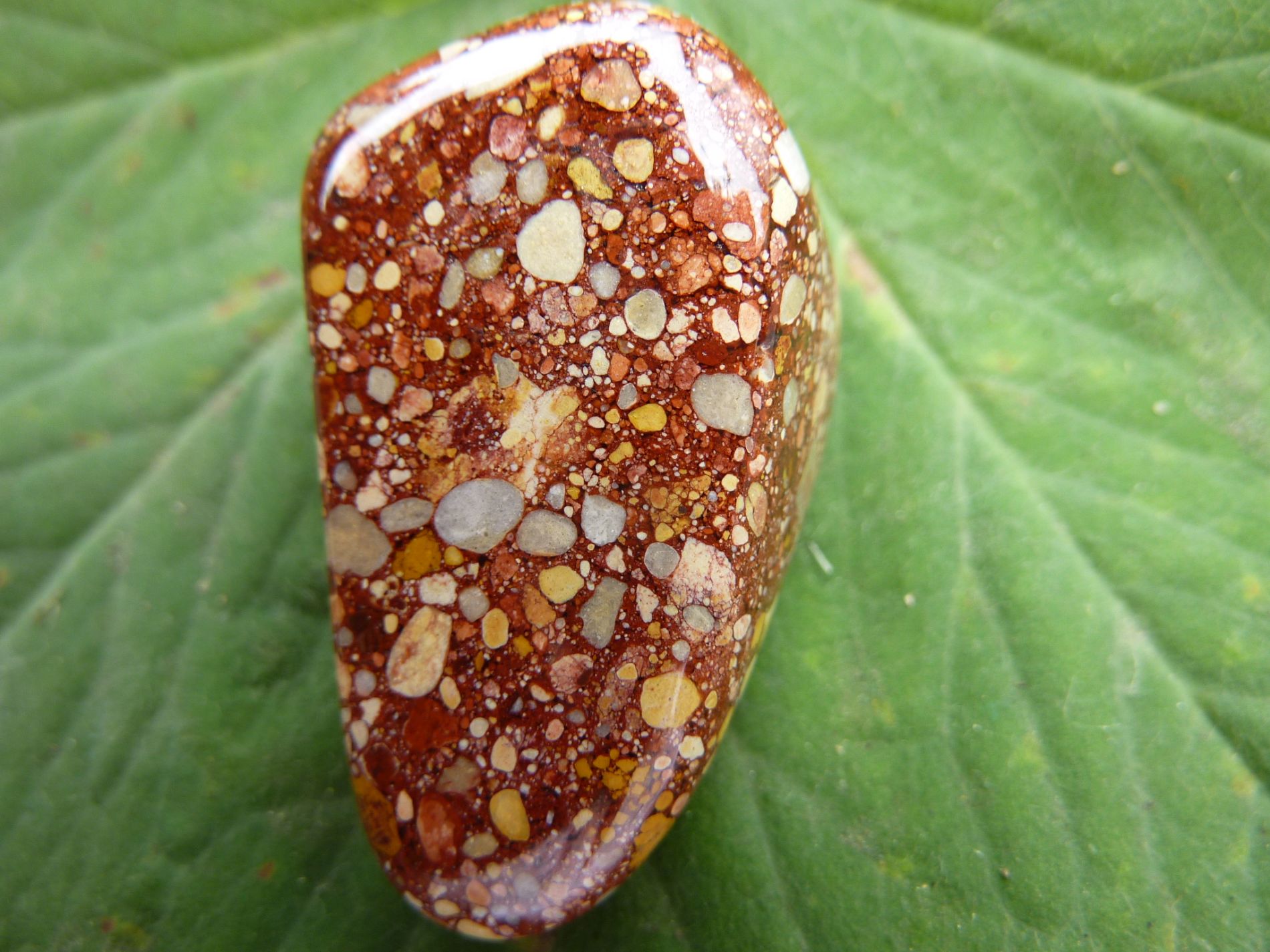 Einspruch, ein Konglomerat hat runde Einschlüsse, ein Trümmerjaspis ist eine Breckzie, die hat eckige Trümmer...Und Jaspis ist das auch nicht, soondern ein Sedimentgestein.