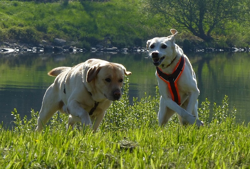 In all den Jahren haben wir noch NIE irgendwen mit den Flexis gefährdet. Nicht mal ich selbst wurde irgendwie verletzt, eben weil ich achtsam bin und die Hunde auch nicht mit Anlauf reinbrettern lasse. Sehe ich Wild, stoppe ich die Leinen ohne hineinzugreifen und bleibe erst mal selbst stehen oder rufe die Hunde zu mir, wenn sie es noch nicht bemerkt haben. Manchmal gehe ich mit 4 Hunden (wenn ein vierbeiniger Urlaubsgast bei uns ist) und auch das geht. Wie gesagt, anderen kommen wir nicht in die Quere und in einer Stadt oder belebten Gegend mit Flexis zu laufen, käme mir auch nicht in den Sinn. Da wo wir gehen, trifft man aber meist stundenlang niemanden. Wir leben ländlich. Und wenn einer mit Hund entgegen kommt, bin eher ich diejenige die von vornherein großräumig ausweicht - wegen Lucas und seiner, äh, verhaltensoriginellen Art.