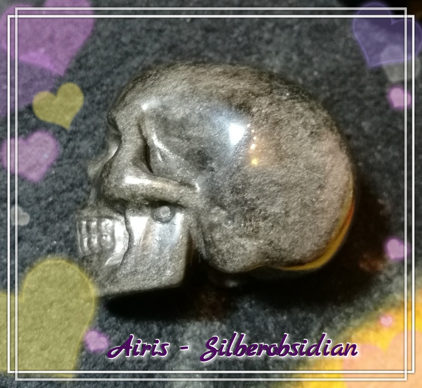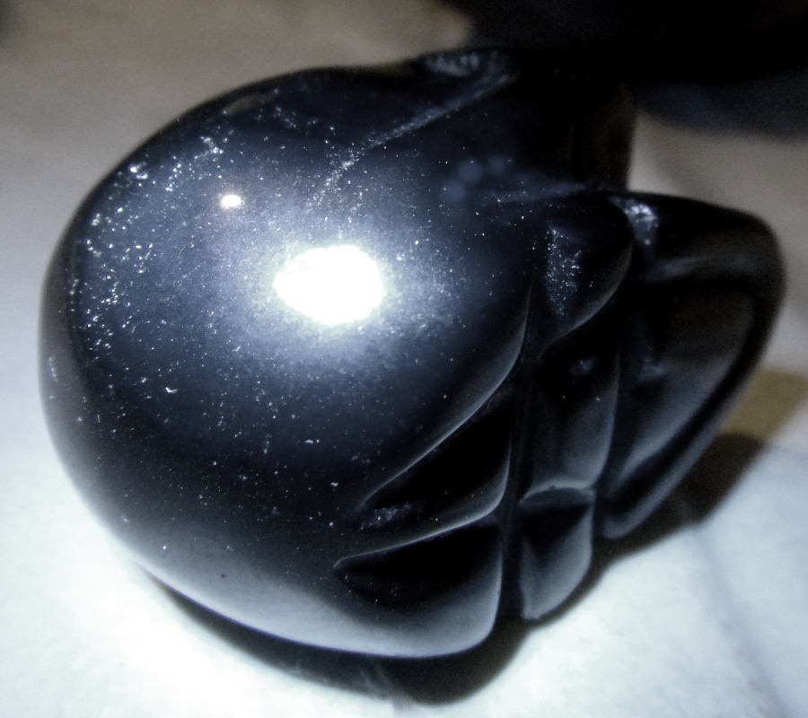Gestern habe ich ein Bild von meinem Skull gemacht. Man sieht das Glitzern. Er hat auch genau an dieser Stelle das Schimmern von einem Mondstein.
