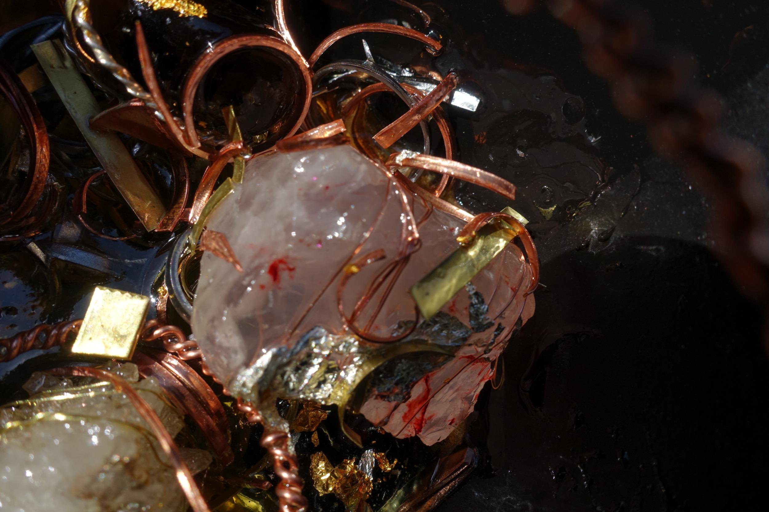 Zerkrümel doch mal ein Stückchen Rosenquarz mit dem Hammer und misch ihn mit dem Polyesterharz. Und dann kucken was passiert.