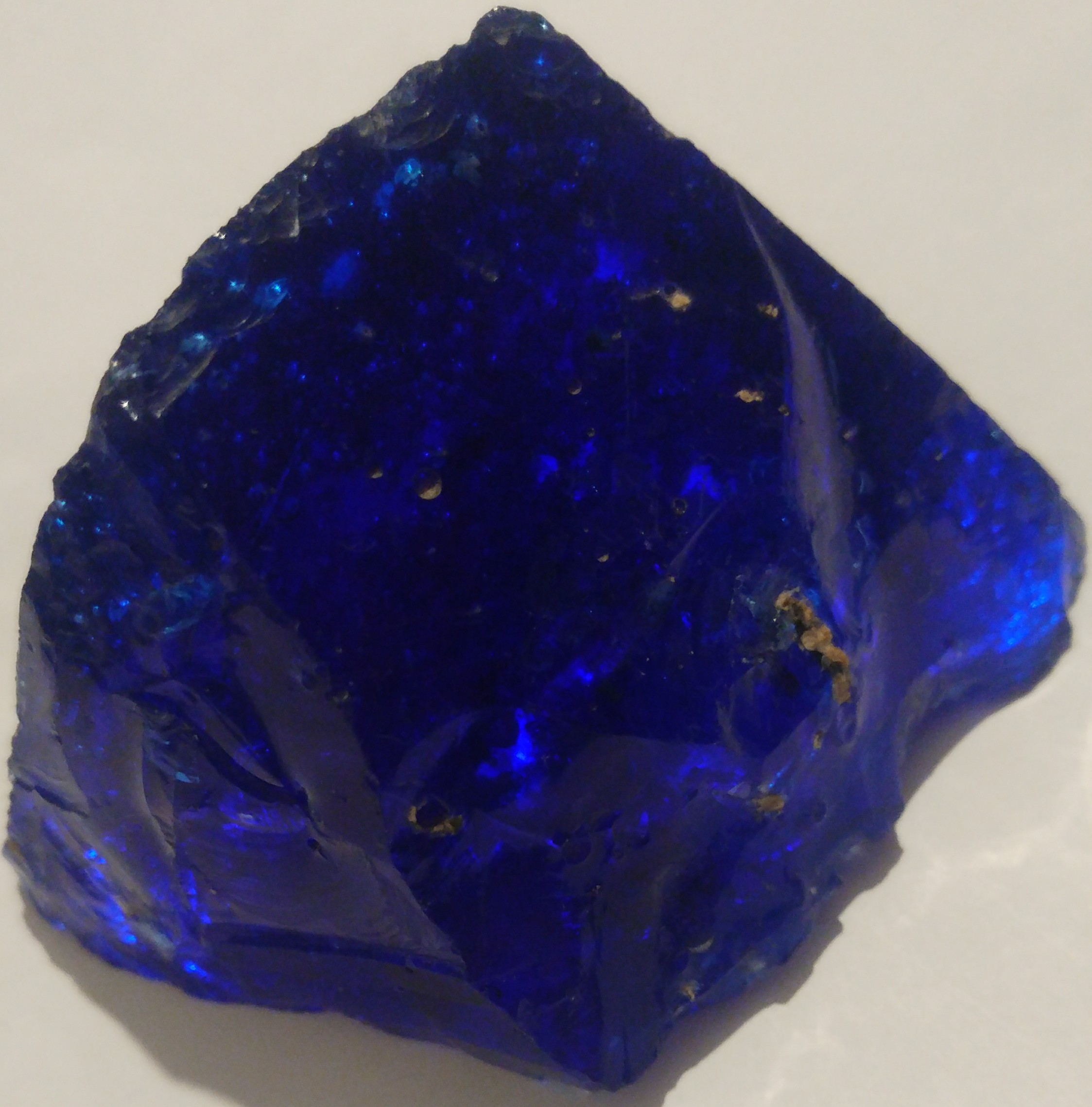 Re: Blauer Glas ähnlich durchscheinender Kristall mit Muscheligen Bruch.