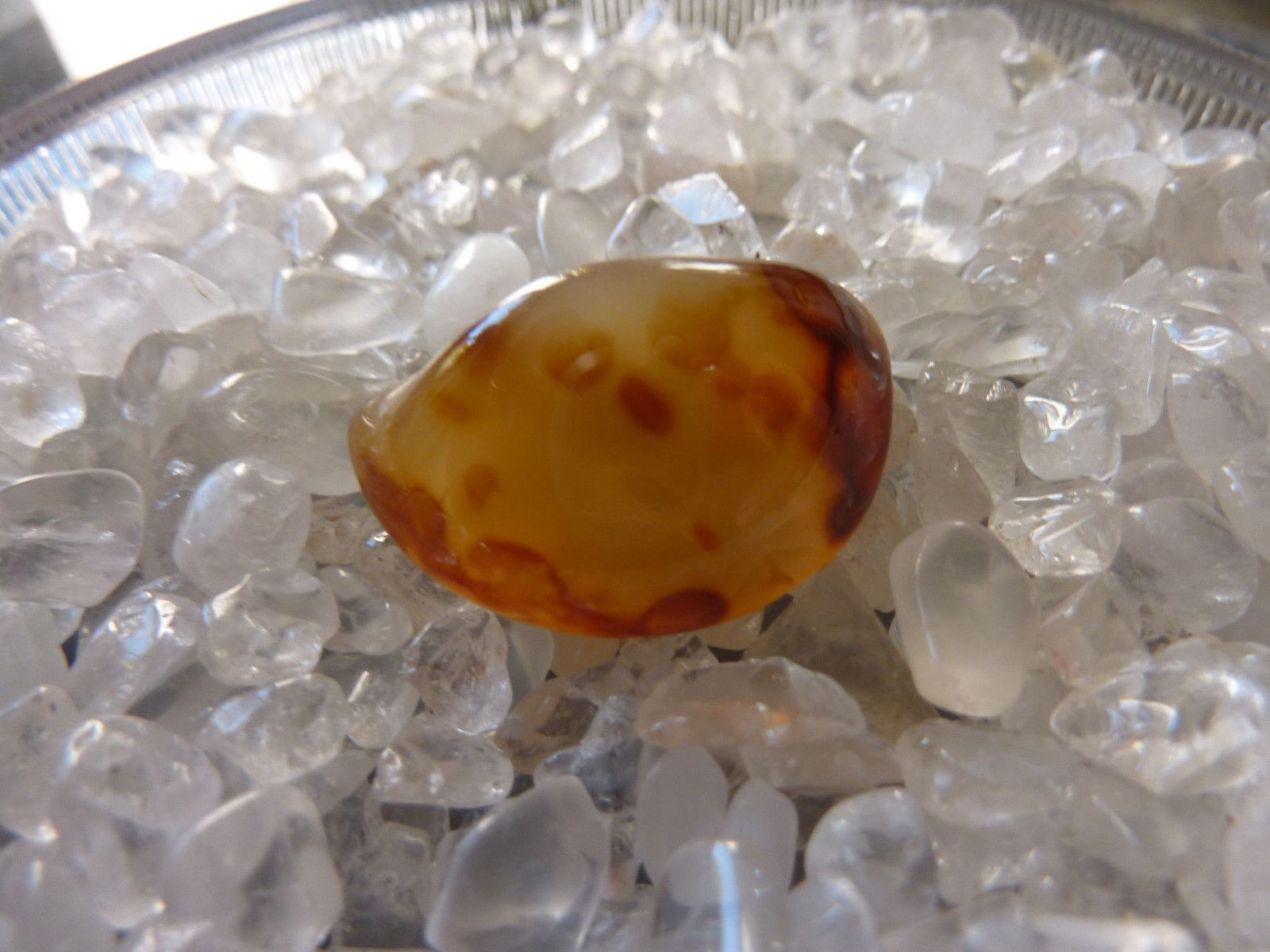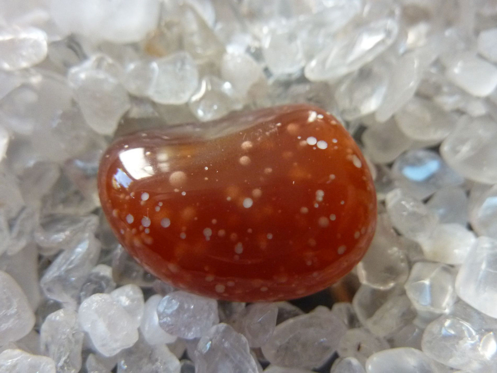 So Karneol mit Pünktchen gibt es auch im Lexikon der Heilsteine von Gienger, dort wird das Herkunftsland Botswana angegeben.