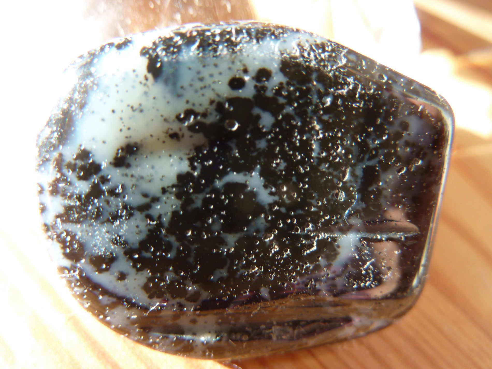 Dieser Stein sieht für mich aus als wäre es ein Chalcedon, oder auch Achat mit ganz, ganz, ganz vielen Dendriten dicht an dicht. Ich weiß nicht, ob so etwas überhaupt möglich ist