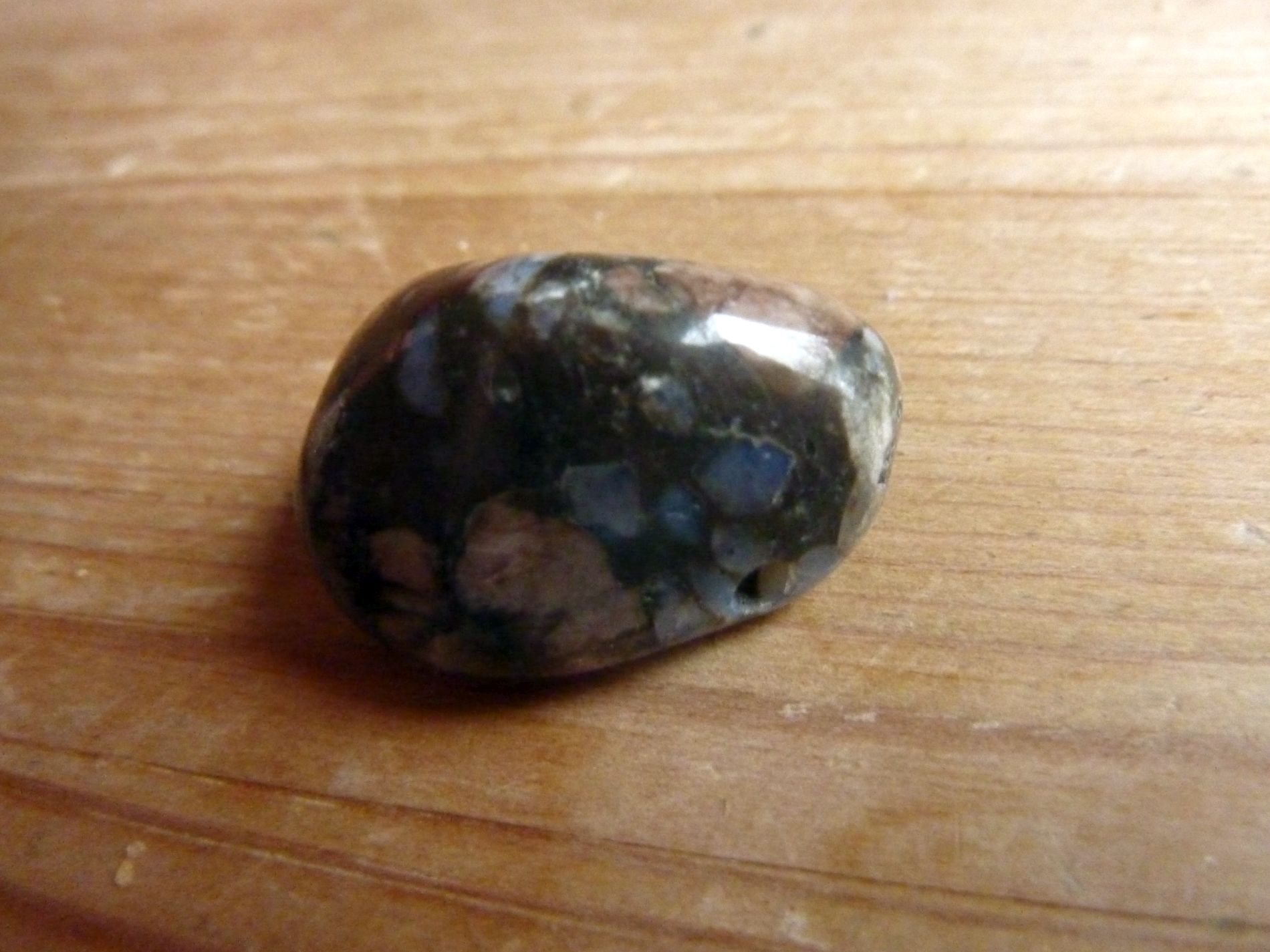 Diesen Stein habe ich als Vulcanite gekauft. An einem Anderen Stand wurde er als Opal- Porphyrit angeboten. Die Blauen Einsprenklinge scheinen auch ein wenig zu opalisieren.