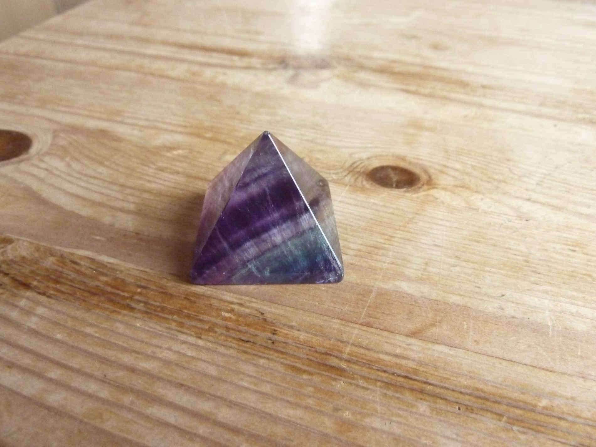 Und dann hat sie noch diese Regenbogenfluorit-Pyramide gekauft