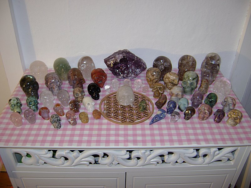 Ich bin ein Quarz-Skull und höre auf den Namen 'Surprise' (Englisch "Überraschung"), weil ich stets sehr erstaunt/überrascht gucke.