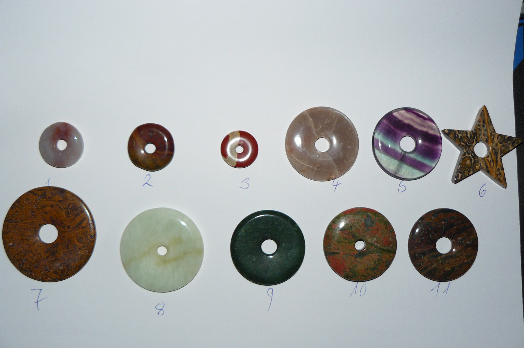 ja die Bezeichnung ist willkürlich dachte man erkennt was es ist die Nr 7 schau mal jetzt einzeln soll Schlangen Jaspis sein jedenfalls mal so erworbenJenni hat geschrieben: 28.05.2018, 16:32 Hallo Feueropale,schöne Donuts hast du da. Aber was ist denn die Nr. 7 für einer? Schlangenjaspis?Dieser sieht besonders schön aus.Der sieht auch etwas aus wie mein Pietersit-Donut.Denn die Reihenfolge der aufgezählten Steinarten stimmt wohl nicht mit der Reihenfolge der gezeigten Donuts überein, daher meine Frage.Liebe Grüße Jenni![]()