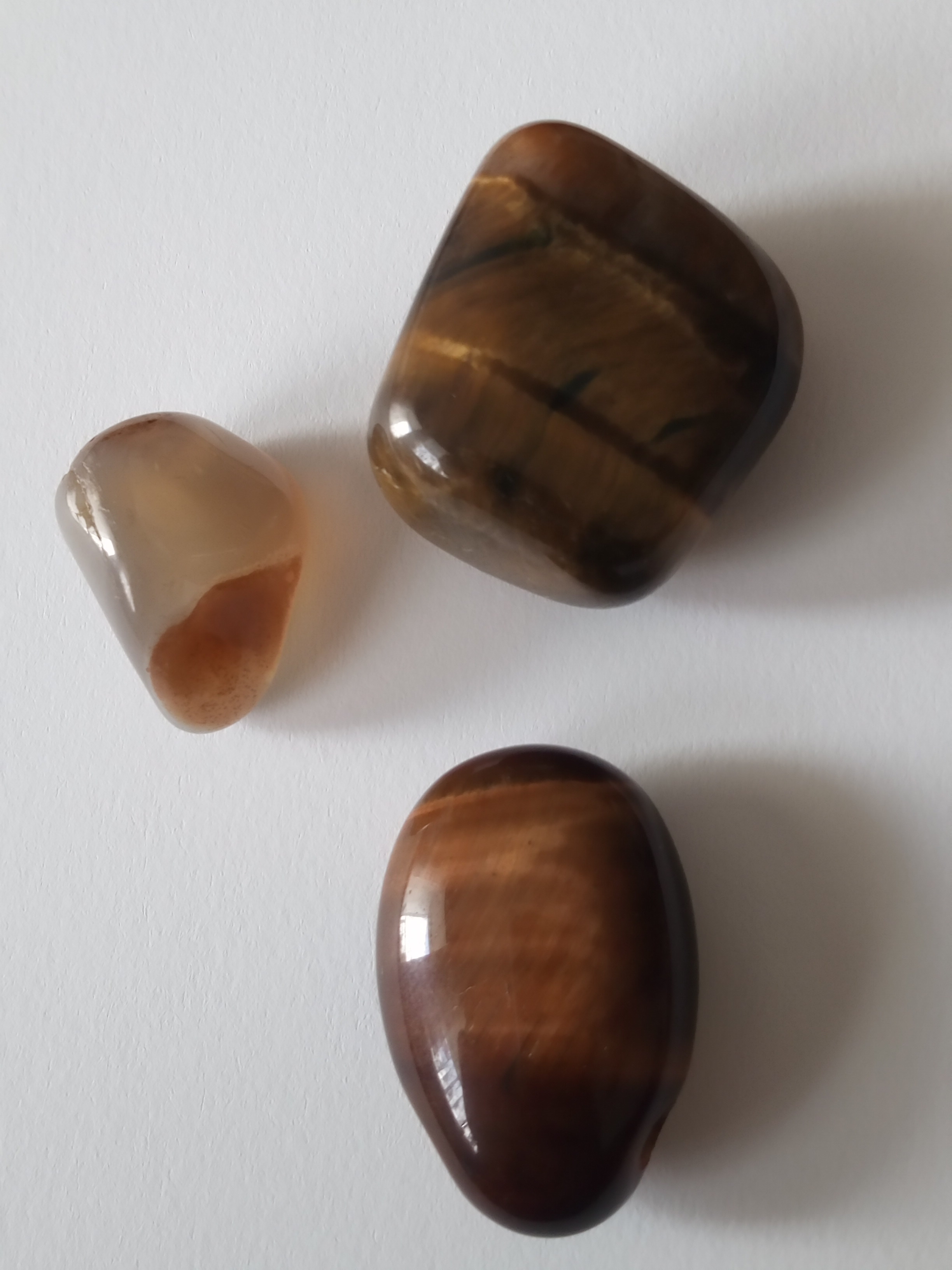 direkt neben meinem Wohnhaus befindet sich eine große Wiese, die durch die Dürre verbrannt und strohig ist. Dort habe ich beim Gassi wunderschöne Steine gefunden. Feuersteinknollen und eine halbe Feuersteinknolle mit einem kleinen Quarzkristalleinschluss. Dann einen Stein der laut meines Wissens ein Falkenauge ist. Ich bin mir aber nicht mehr sicher, da ich in einem anderen Geschäft den gleichen Stein als Tigerauge gefunden habe. Ich selbst habe auch einen Stein, der ein Tigerauge sein soll. Und gestern habe ich einen weichen kleinen transparenten Stein gefunden, der ein Schichtachat sein könnte. Die Bilder seht ihr unten.