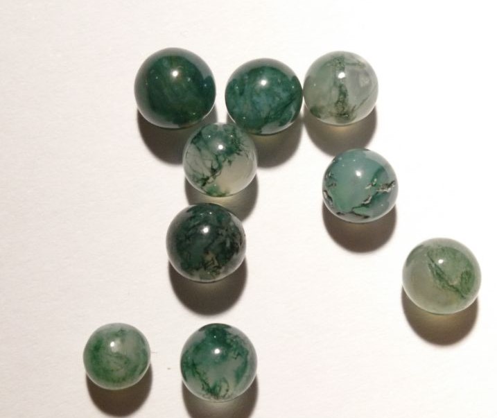 ich habe beim Schmuck-Kauf ein kleines Säckchen mit Edelsteinkugeln dazu bekommen. Ich würde die Steine nun gern bestimmen, damit ich sie richtig behandeln kann. Da ich noch blutige Anfängerin in der Bestimmung bin, würde ich euch gern fragen, ob es wirklich Moosachate sein können?! Vielen Dank schon mal