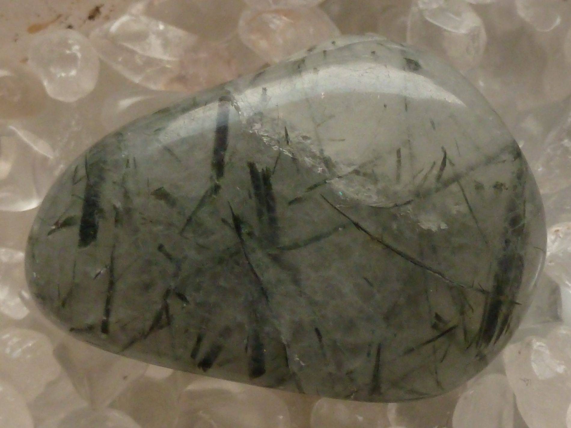 Dieser Aktinolith-Quarz ist leicht grünlich. Konnte meine Kamera auch nicht so richtig gut einfangen. es ist ebenfalls ein Anhänger.