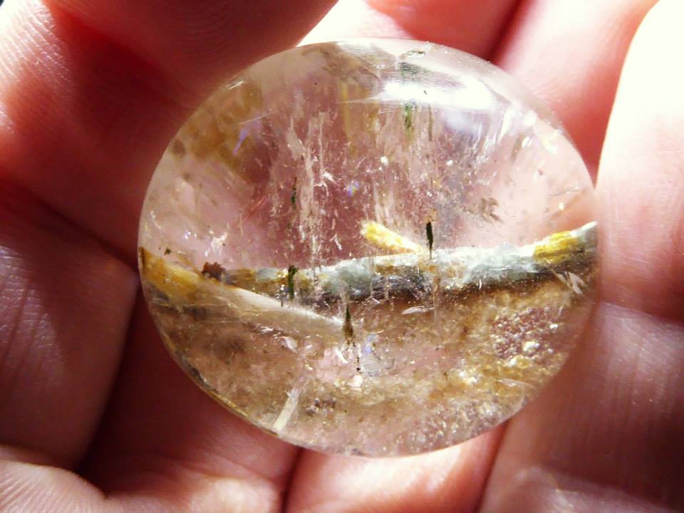 lange gegoogelt und was ich so an Topas Carbochons mit einschlüssen fand kommt das hin, das gelblich-braune wäre vielleicht limonit oder