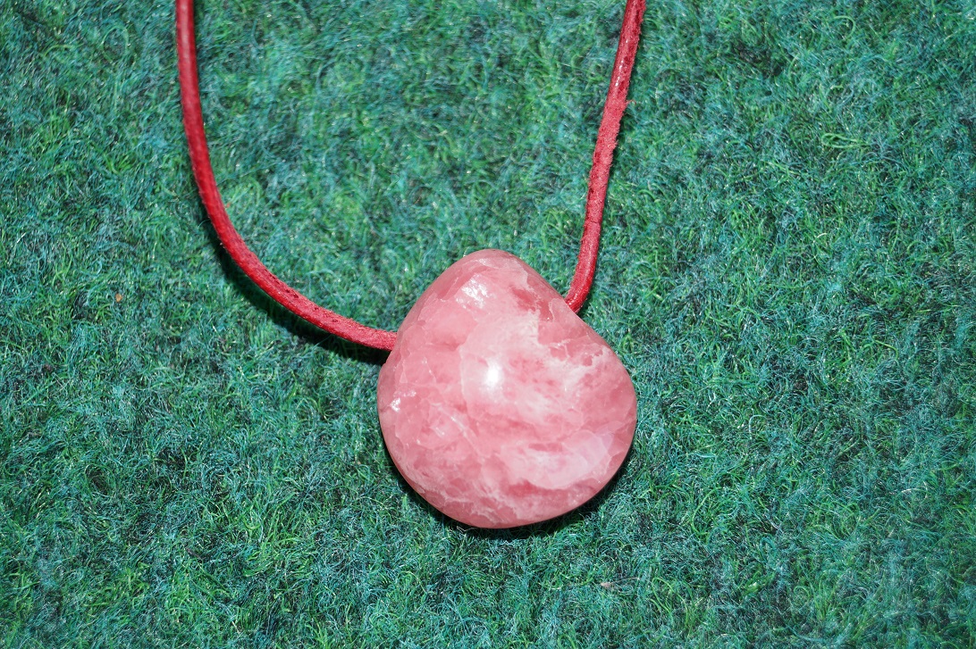 Sehr schöner Rhodochrosit mit einem farblich passenden Lederband. Hab ich nie getragen, daher ist das Lederband neu.