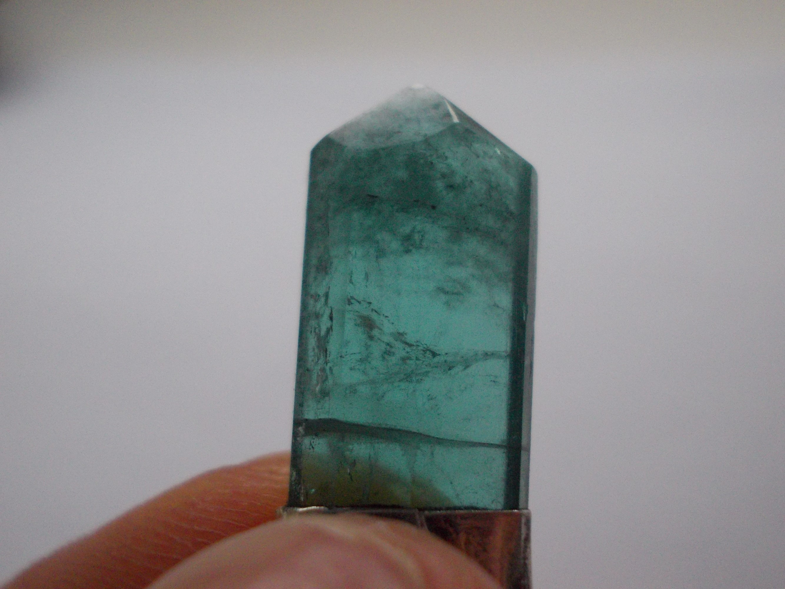Also ich würde behaupten, dass es sich um einen Indigolith handelt. Könnte aber auch eventuell ein Verdelith, also ein grüner Turmalin sein - wenn auch mit einem sehr, sehr untypischen Blaustich. Von der Farbe würde auch ein Apatit in Frage kommen. Aber dafür passt meiner Meinung nach die Kristallstruktur nicht wirklich.