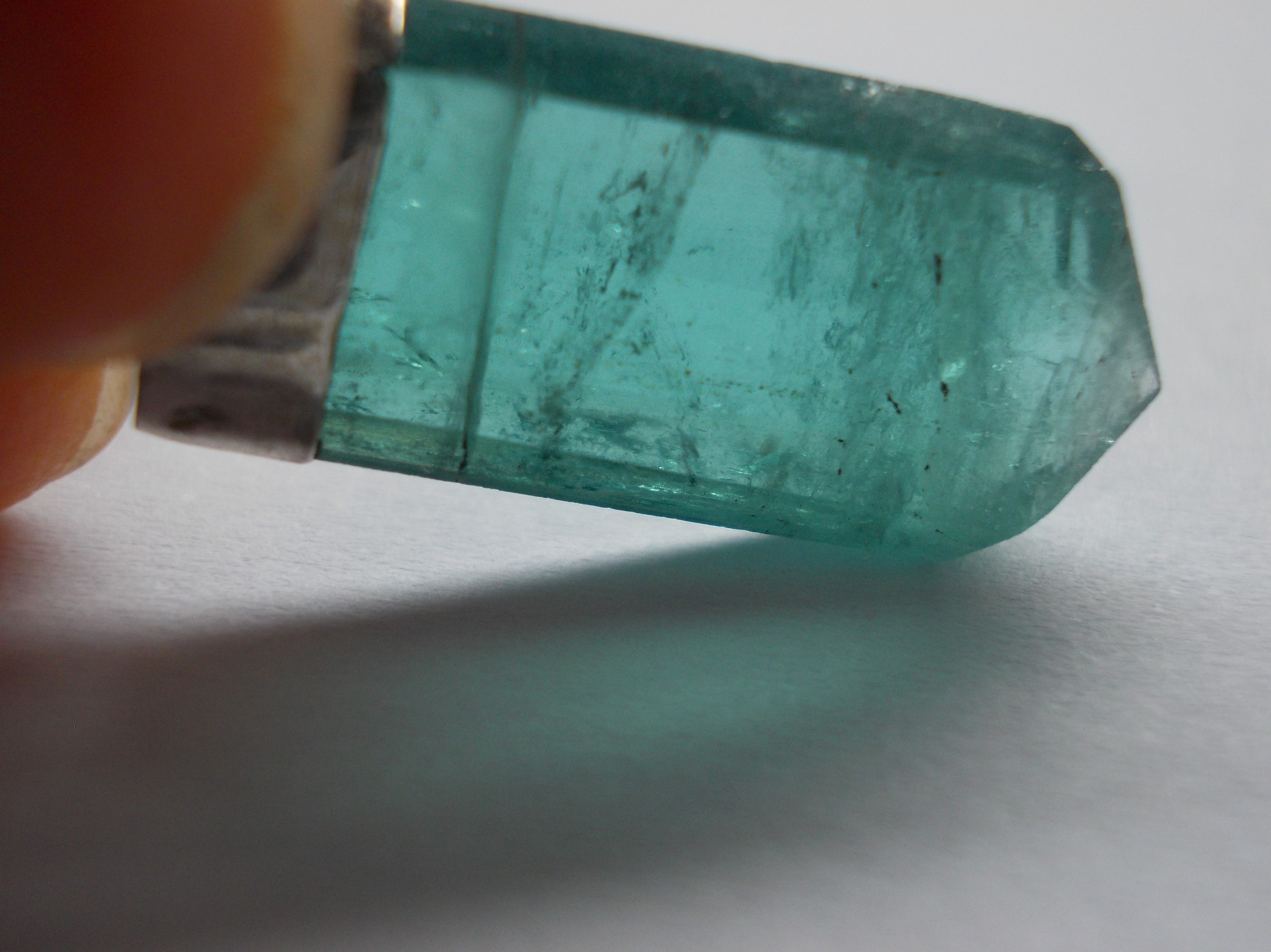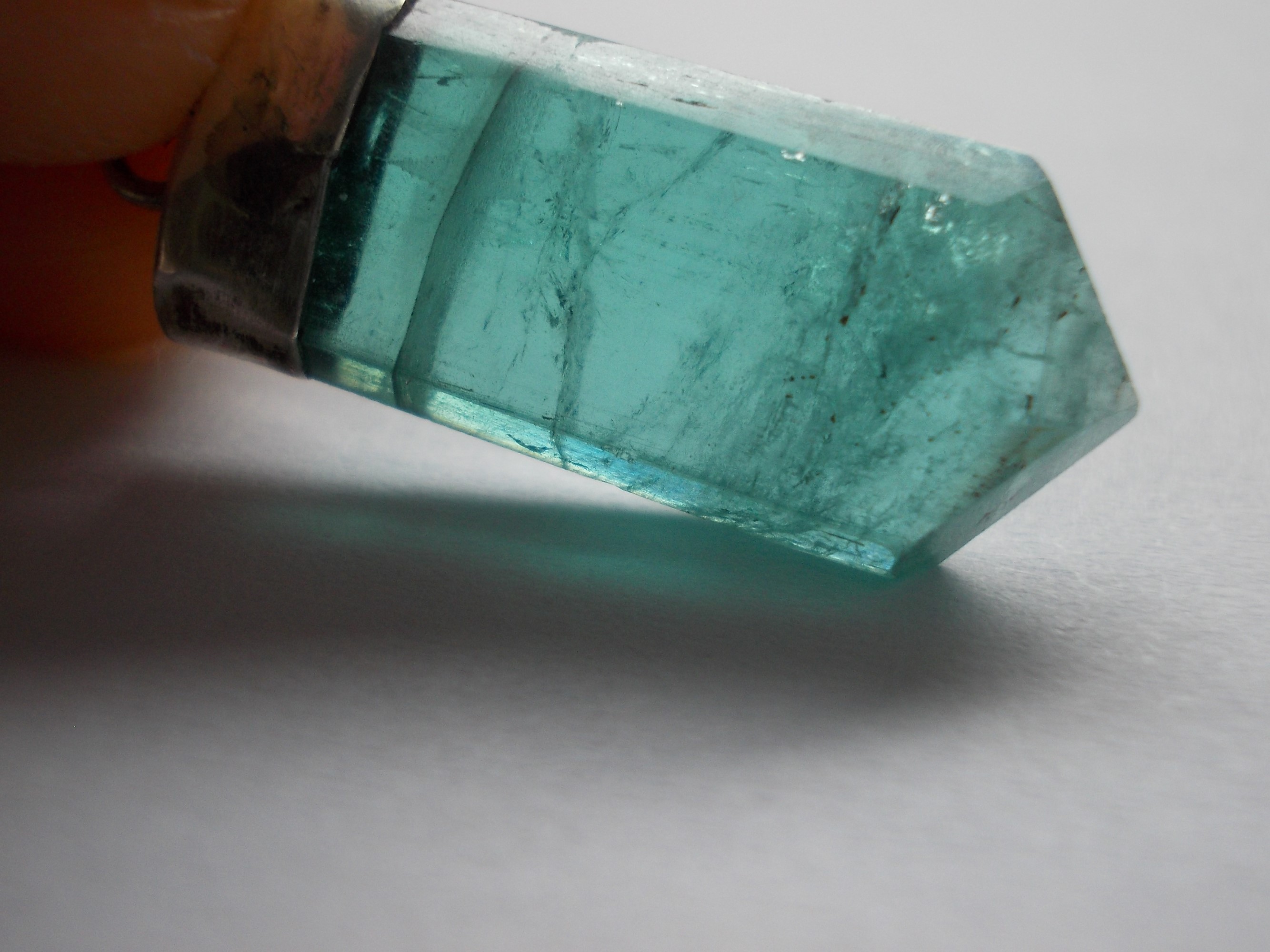 Wenn ich die Farben vergleiche - das Spiltterstück scheint an einzelnen Stellen etwas heller durch, und die helleren Stellen sind nahezu identisch mit dem Anhänger. Wegen dem Preis dachte ich mir dann, dass er ja einige Einschlüsse hat und nicht klar ist, deshalb eher "minderwertig" oder "Ausschussware"? . Aber der Schliff scheint schon unüblich zu sein.