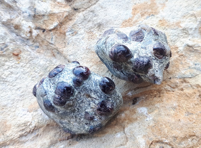 Größenbereich der Steine etwa 3 cm, Gewicht zusammen etwa 30 Gramm.