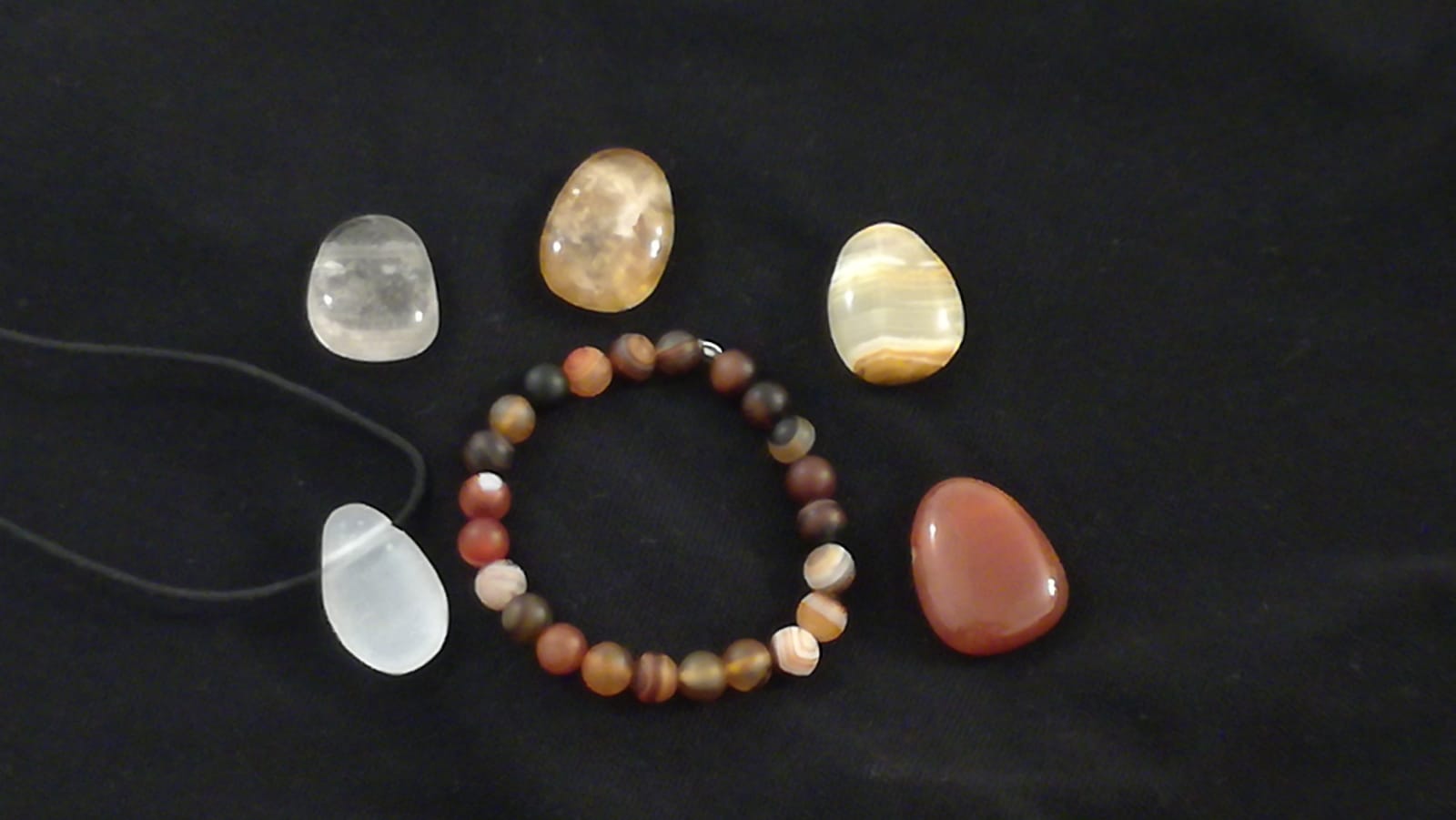 Selenit - Rauchquarz - Name unbekannt, denke Citrin - Aragonot/Calcit - Achat Anhänger gebohrt