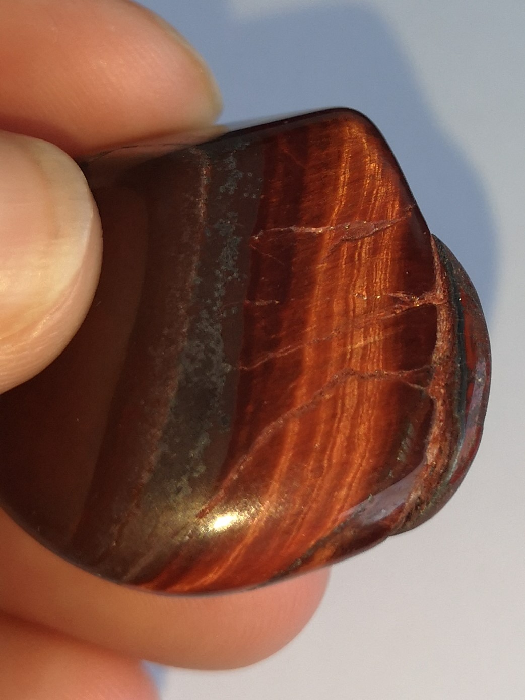 Im Handel wird er als Katzenauge, Ochsenauge, oder Rotes Tigerauge angeboten.