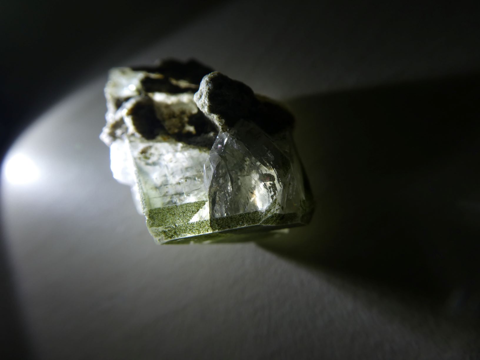 Sind da nicht Würfel und Oktaeder zu erkennen? Könnt´ es nicht farbloser Fluorit sein?