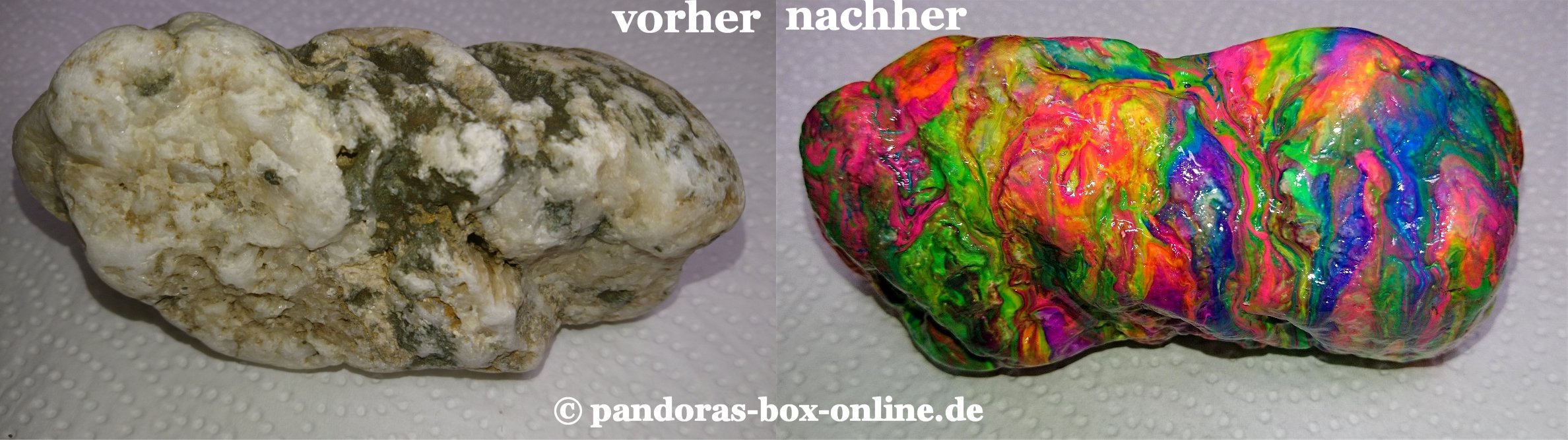 Ich denke, die Wirkung wird nicht beeinträchtigt da sich die Mineralienzusammensetzung nicht geändert hat. Die einzige Beeinträchtigung könnte ich mir psychisch, durch veränderte Optik des Steines vorstellen. Also, das man sich mit dem bunten Stein psychisch anders fühlt als mit dem unbemalten Stein.