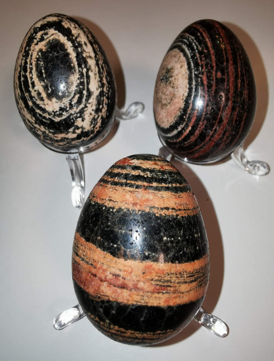 Das erste Ei sieht für mich aus wie Pilabara-Jaspis. Sehr schön, dieses Ei.
