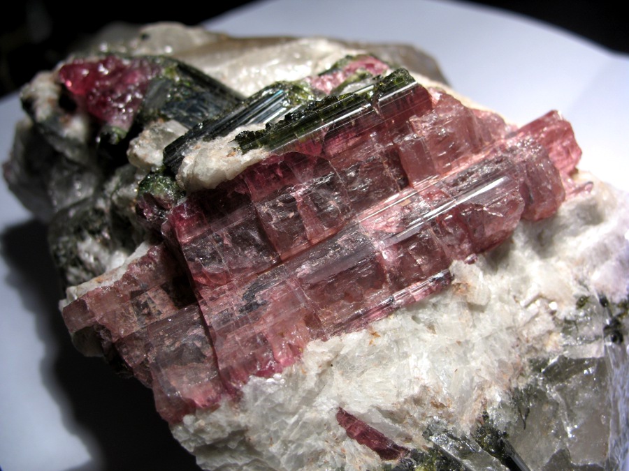 Eine Stufe bestehend aus Rubellit und grünem Turmalin