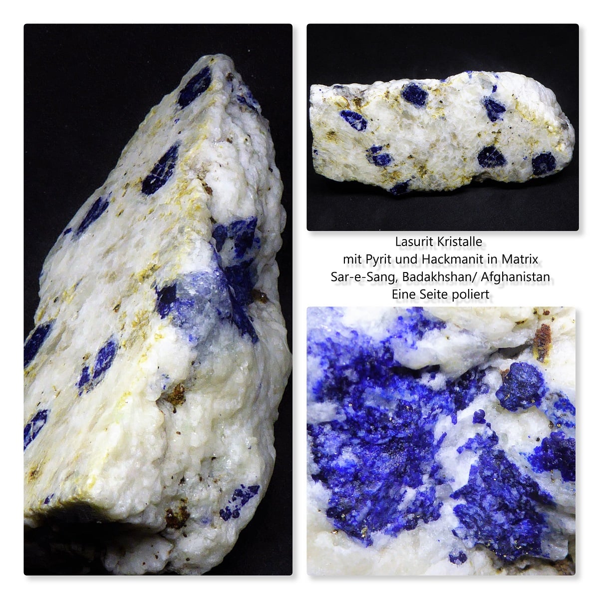 Beim Lapis ist der Lasurit das Farbgebende Mineral, leuchtendes Ultramarinblau, man nahm es früher zum malen und je mehr davon zu sehen ist desto teurer.