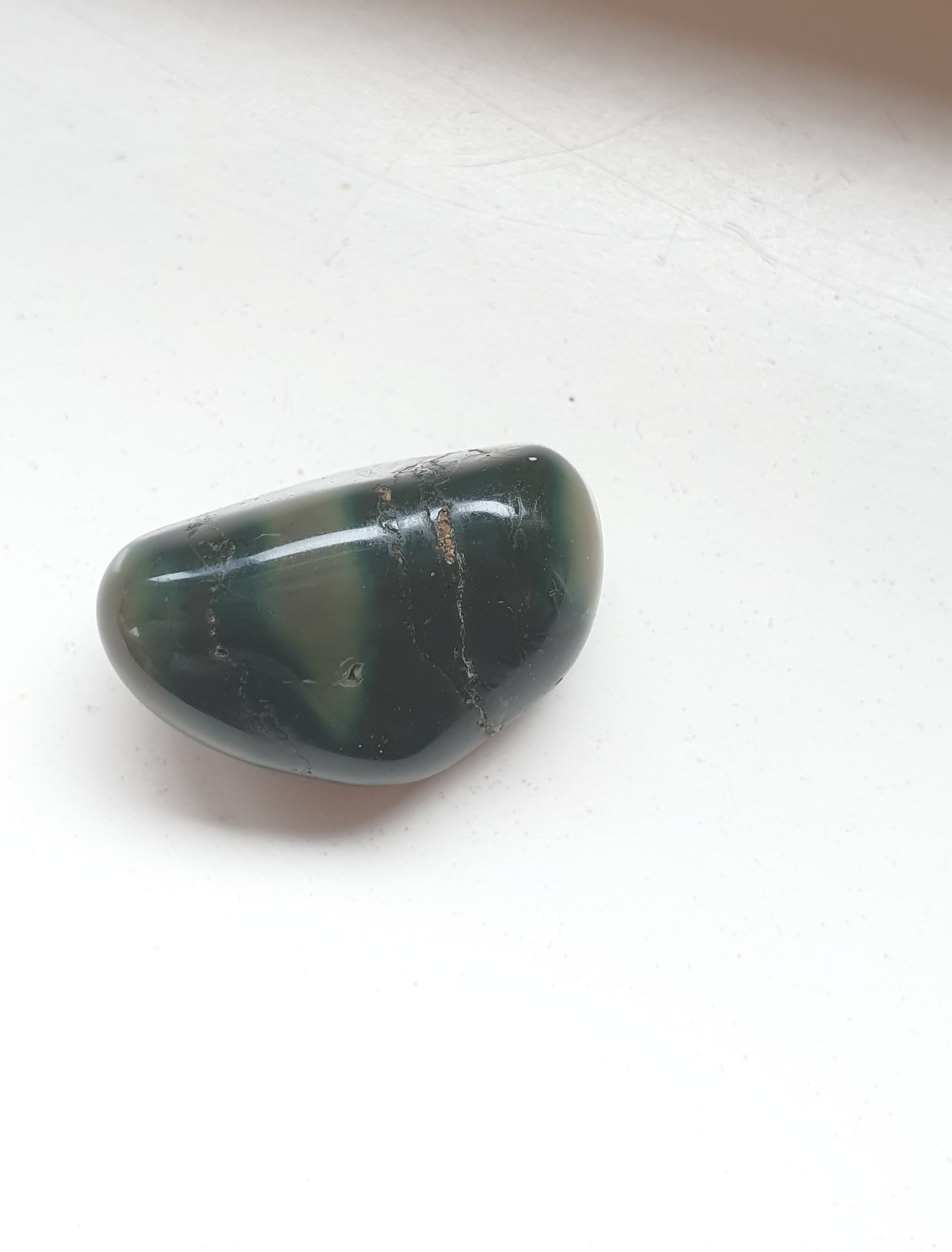 Ich habe hier einen dunkelgrünen Stein, der mit hellgrün Flecken versehen ist. Über Hilfe freue ich mich wie immer sehr