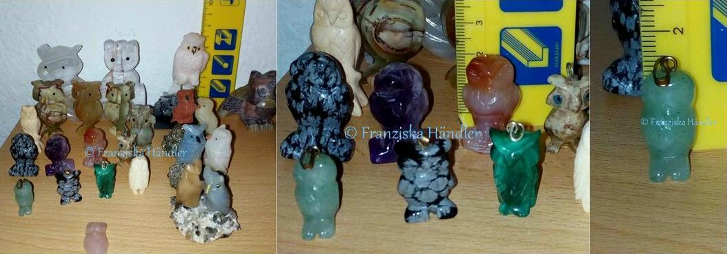 Alle hier gezeigten Eulen sind zwischen 2 und 8 cm hoch