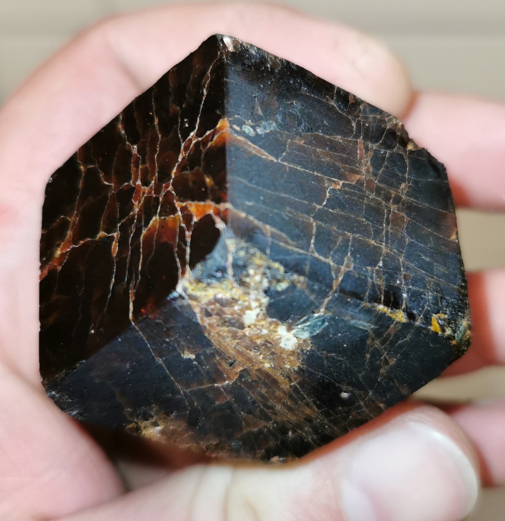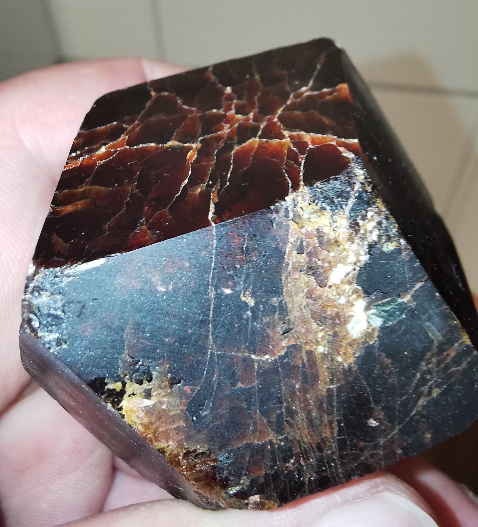 Ich weiß jetzt auch, warum der Schmuckstein, vom Granat, immer so klein ist. Außen sind schöne, durchscheinende kleine Stellen und innen drin, sieht er eher "langweilig" braun aus. Deshalb ist es mir so wichtig, dass der untere Rand heil bleibt, da er dort einen durchscheinenden Bereich hat 😍