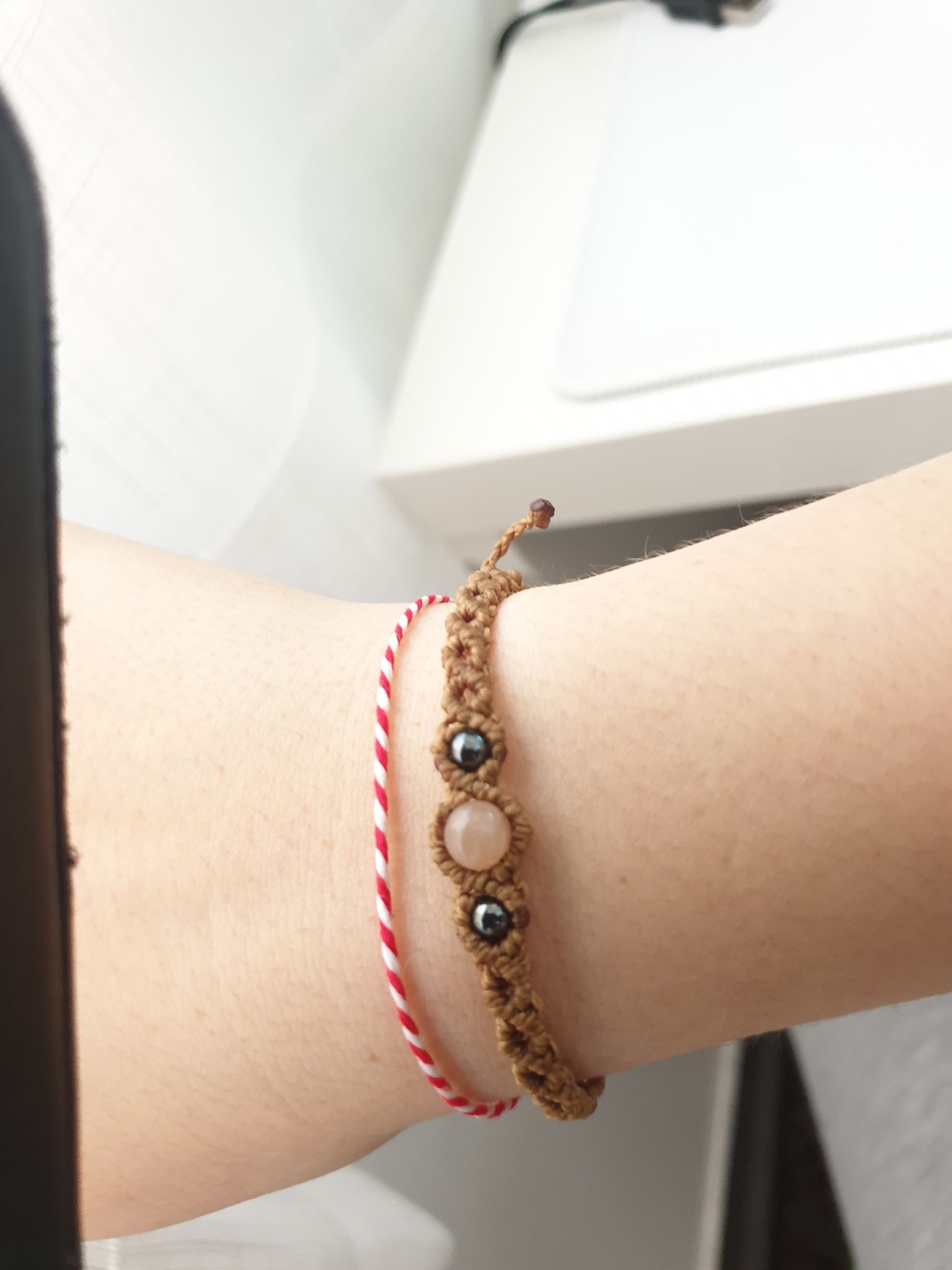 Ich habe ein Armband geschenkt bekommen mit zwei kleinen Hämatit-Steinen und einem größeren Sonnenstein.